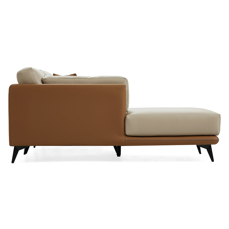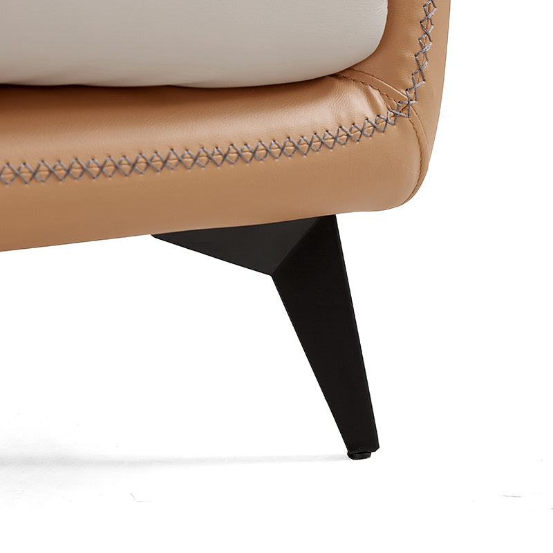 Relax into a sofa made to last.Wrapped in premium genuine leather with vegan leather accents, it balances supple softness with enduring support. Perfect for cozy nights, slow mornings, or relaxed afternoons, this sofa brings quiet confidence to your space—comfortable, durable, and beautifully understated.