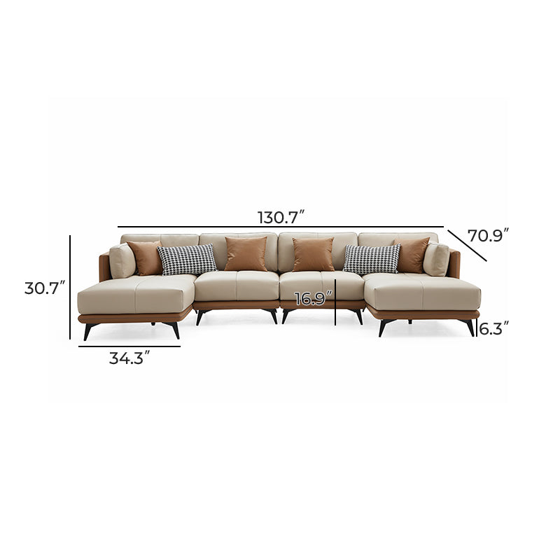 - All-Leather U-SectionalBeige / 131 inch