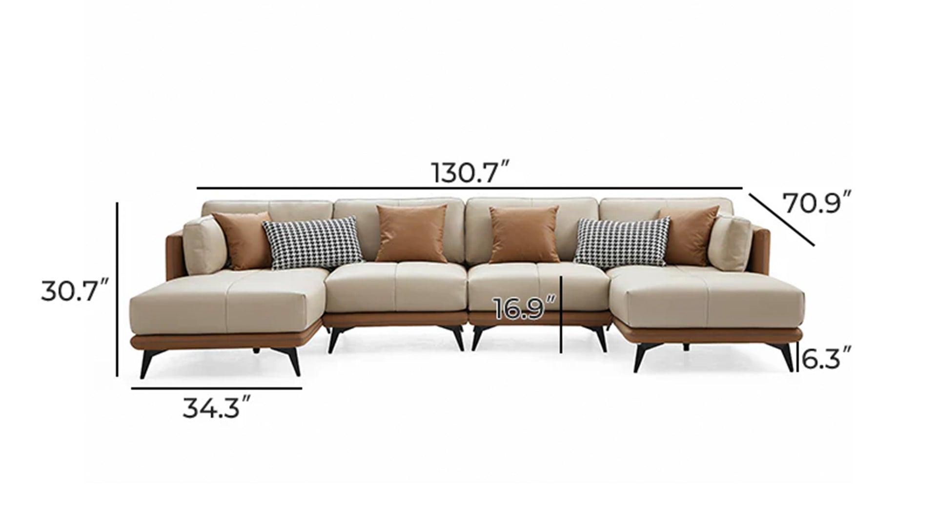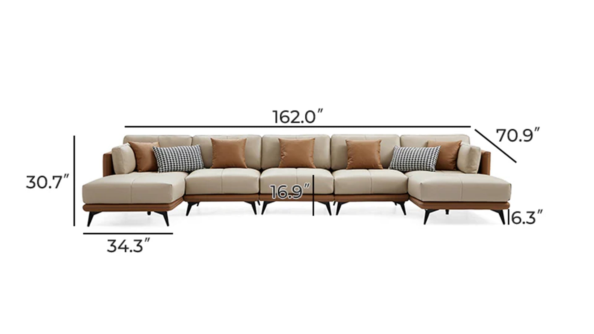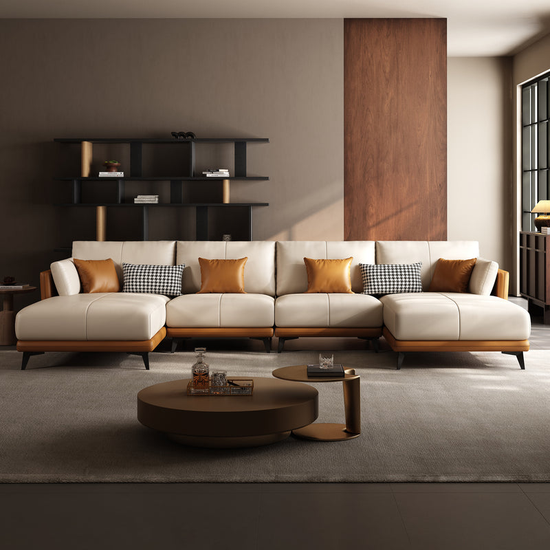 - All-Leather U-SectionalBeige / 162 inch