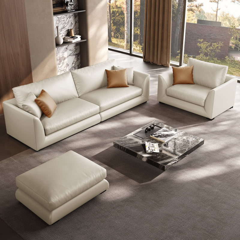 - Genuine Leather Feathers Sofa SetBeige / 4 Seater + Single Chair + Ottoman