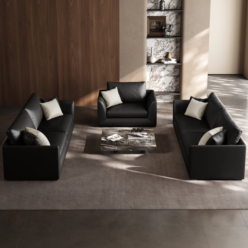 - Genuine Leather Feathers Sofa SetBlack / 4 Seater + 4 Seater + Single Chair