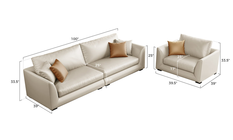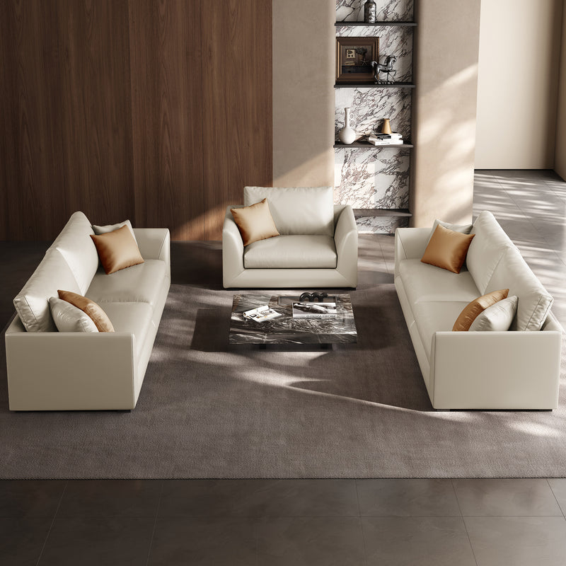 - Genuine Leather Feathers Sofa SetBeige / 4 Seater + 4 Seater + Single Chair