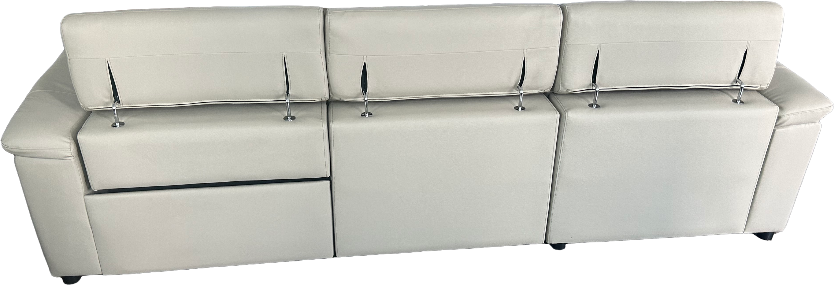 Easy set up with parts stored under the sofa for convenience.