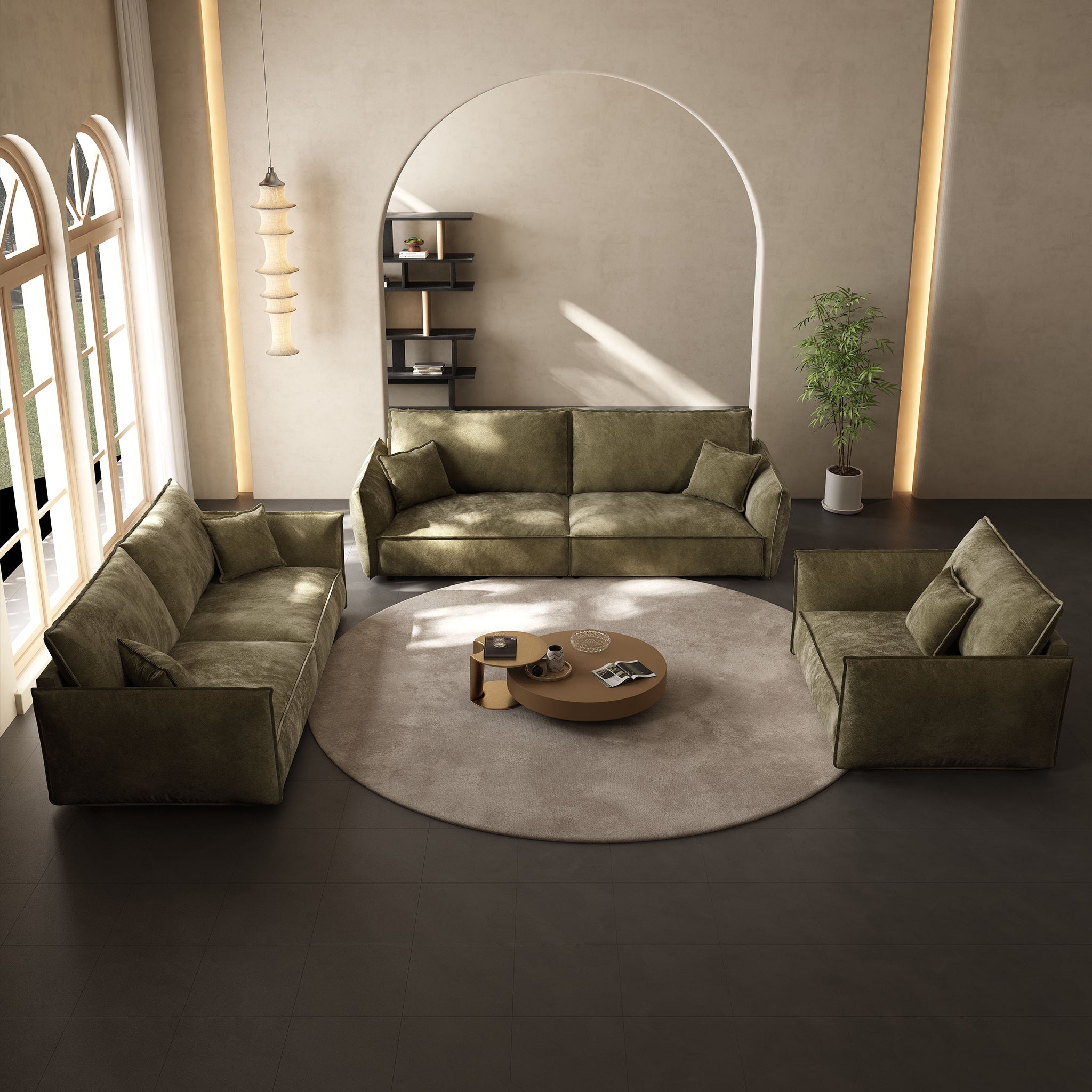 • Combo Modern Living Room SofaGreen / 3 seater
