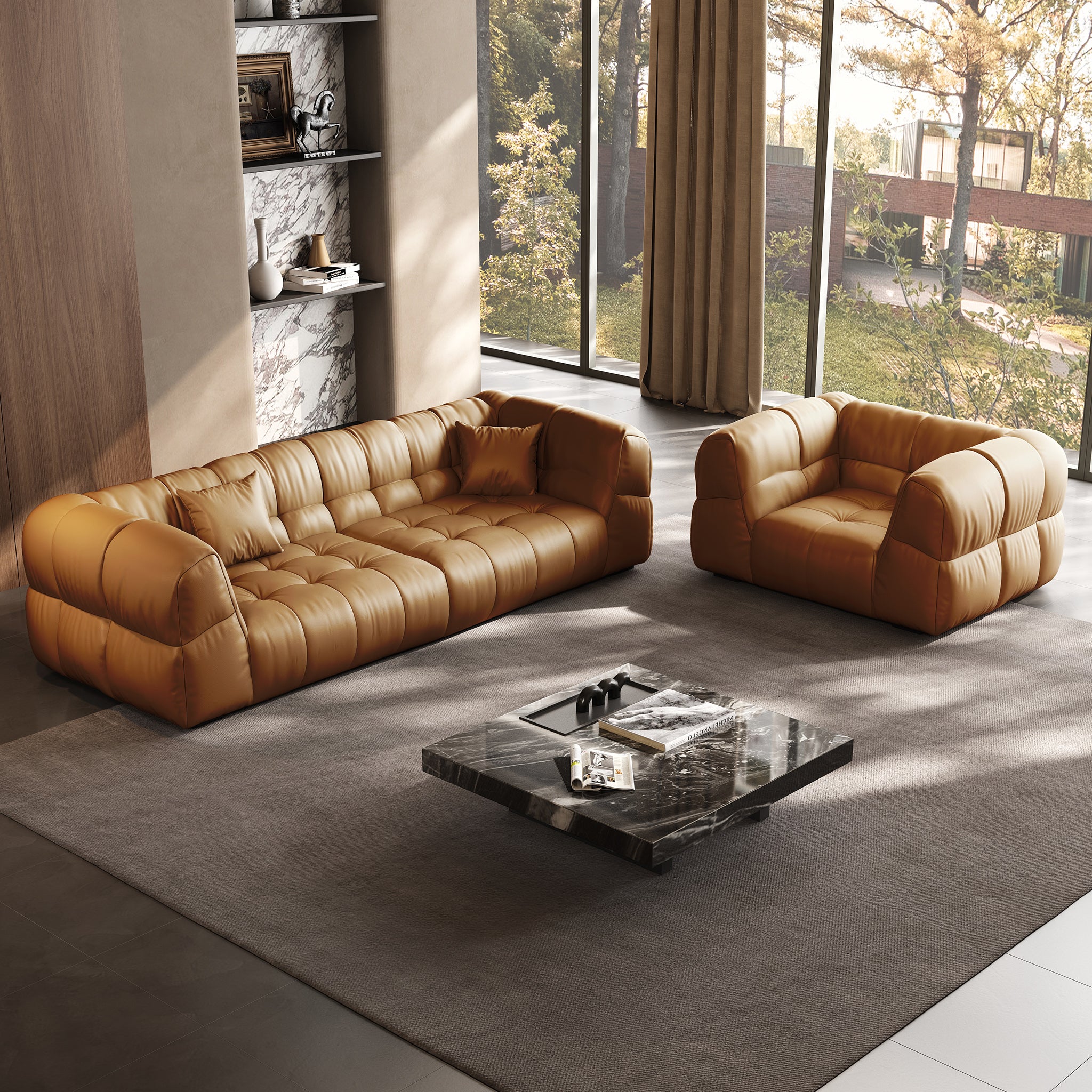 Float on feather-down backrests, anchored by resilient foam seats. Our sofa masters the art of lavish softness and structured comfort—where luxury meets lasting shape.