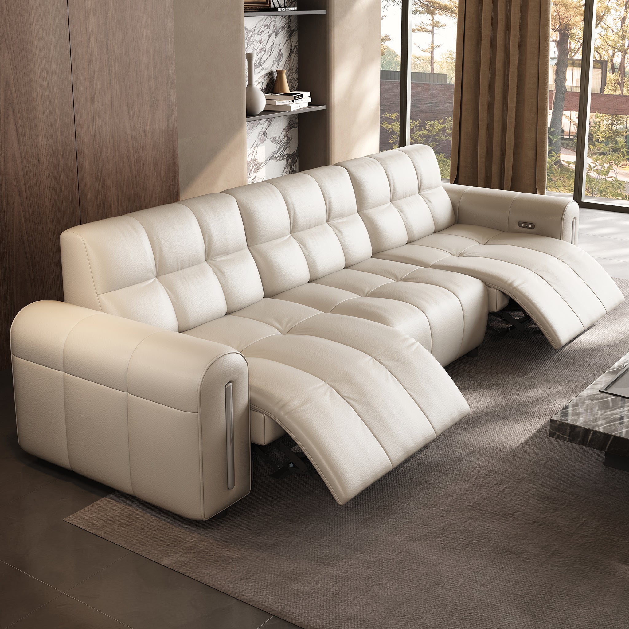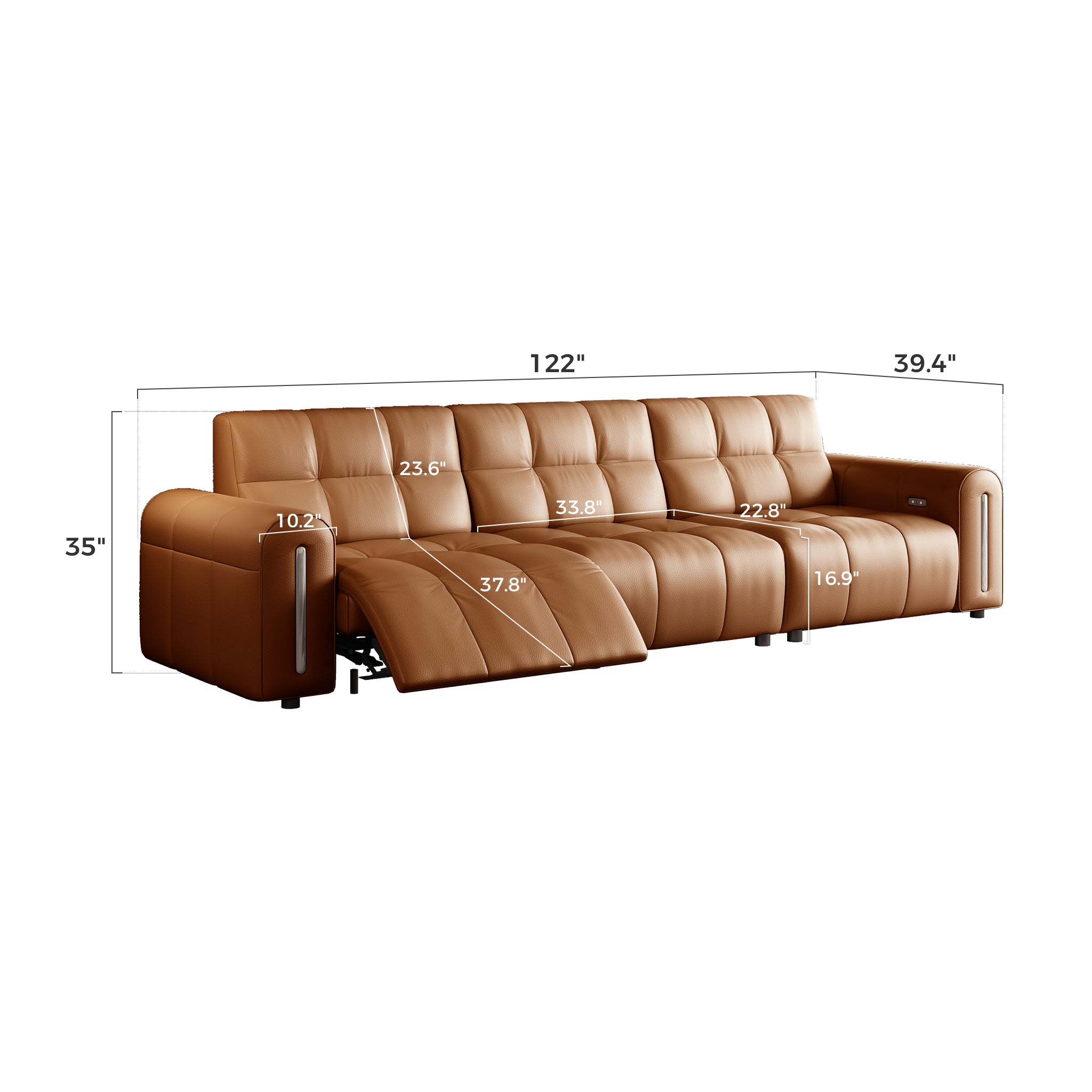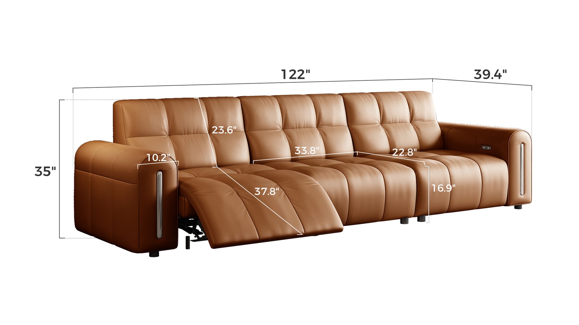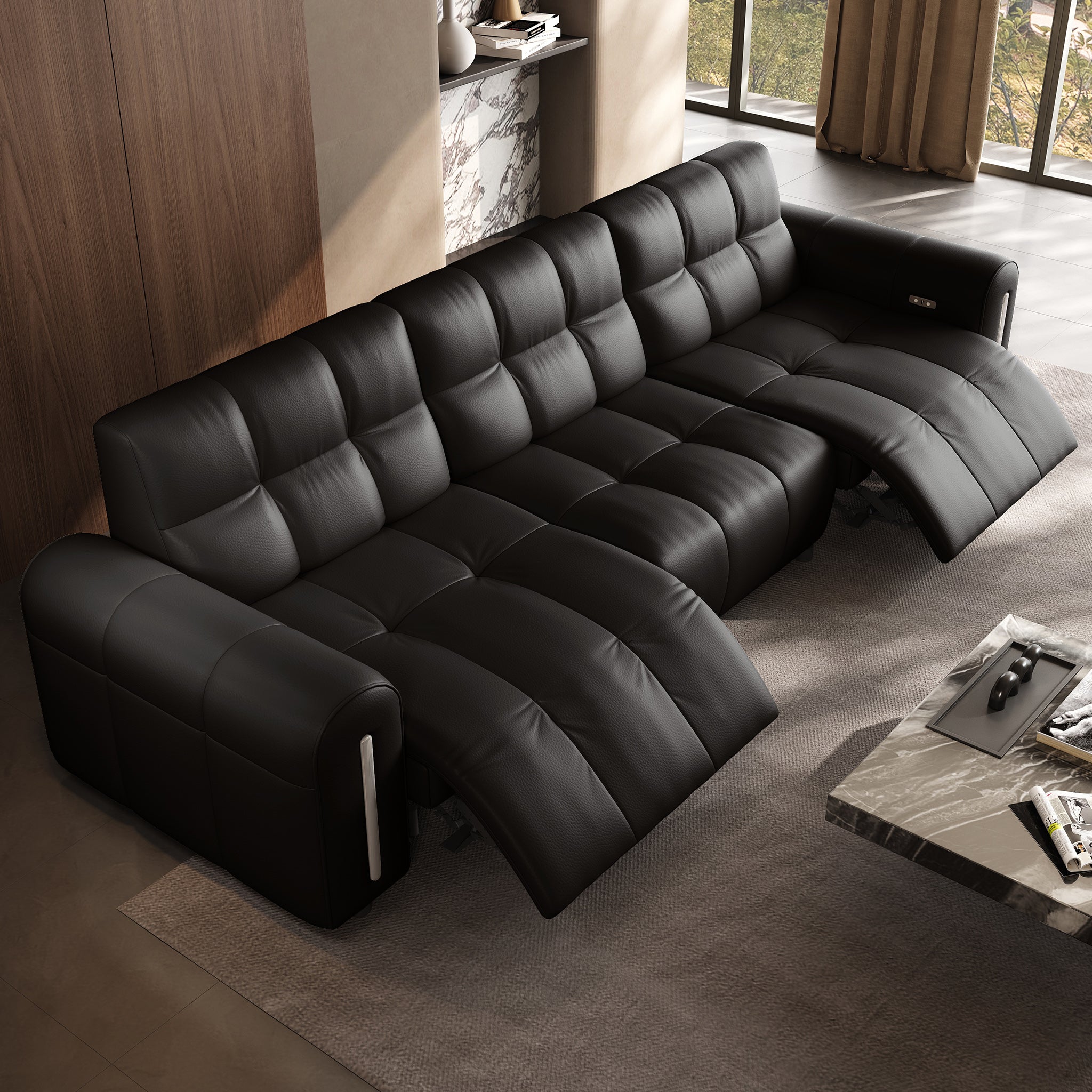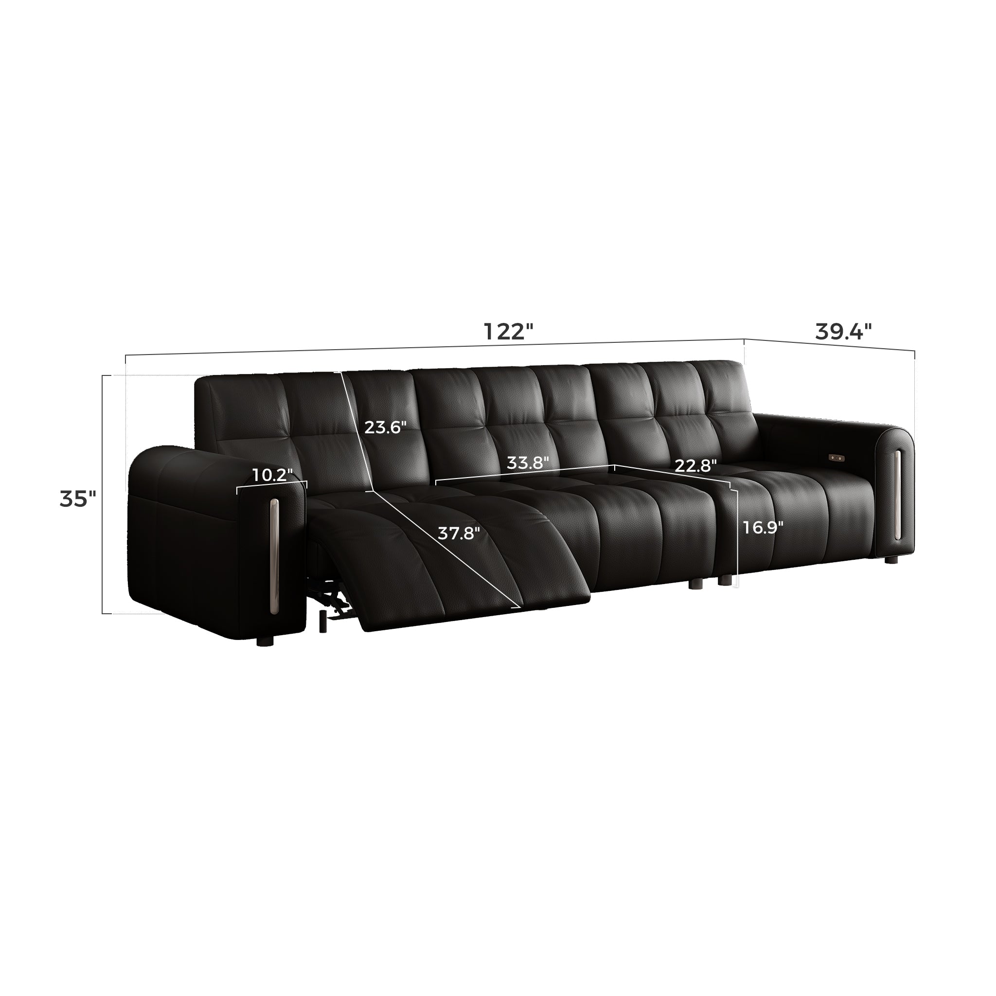 Two user-friendly buttons control reclining — one for opening, one for closing — while the integrated USB port allows you to charge devices conveniently while seated.