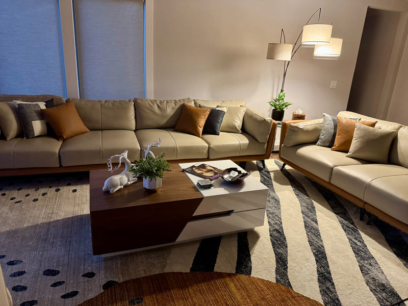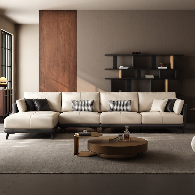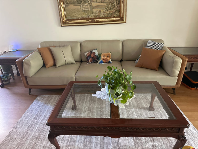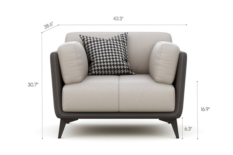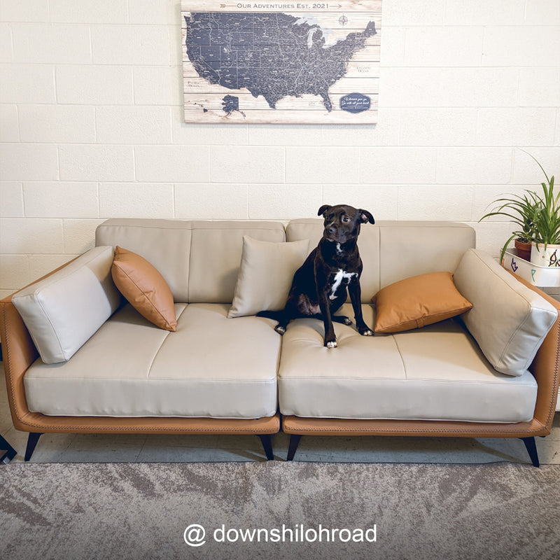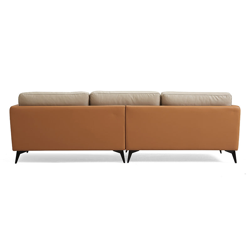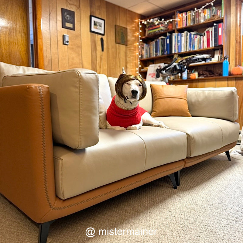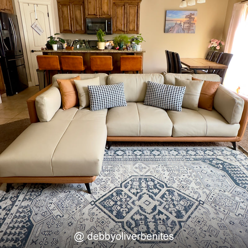 Relax into a sofa made to last.Wrapped in premium genuine leather with vegan leather accents, it balances supple softness with enduring support. Perfect for cozy nights, slow mornings, or relaxed afternoons, this sofa brings quiet confidence to your space—comfortable, durable, and beautifully understated.