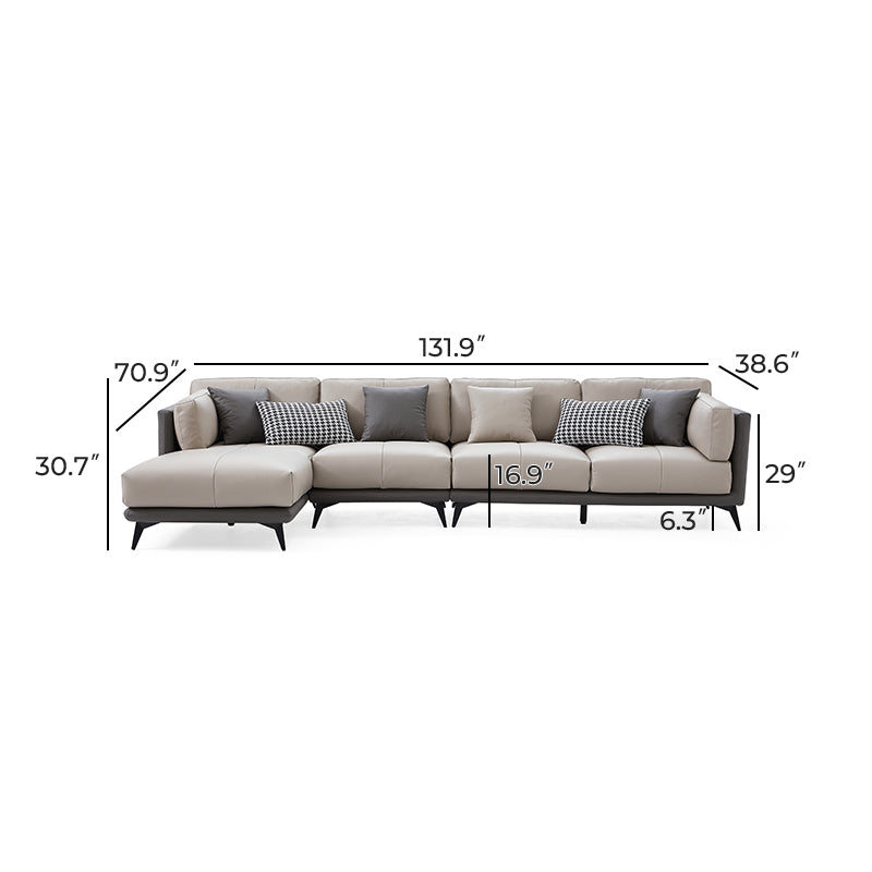 - Grey All-Leather SectionalGray / Facing Left / 132 inch