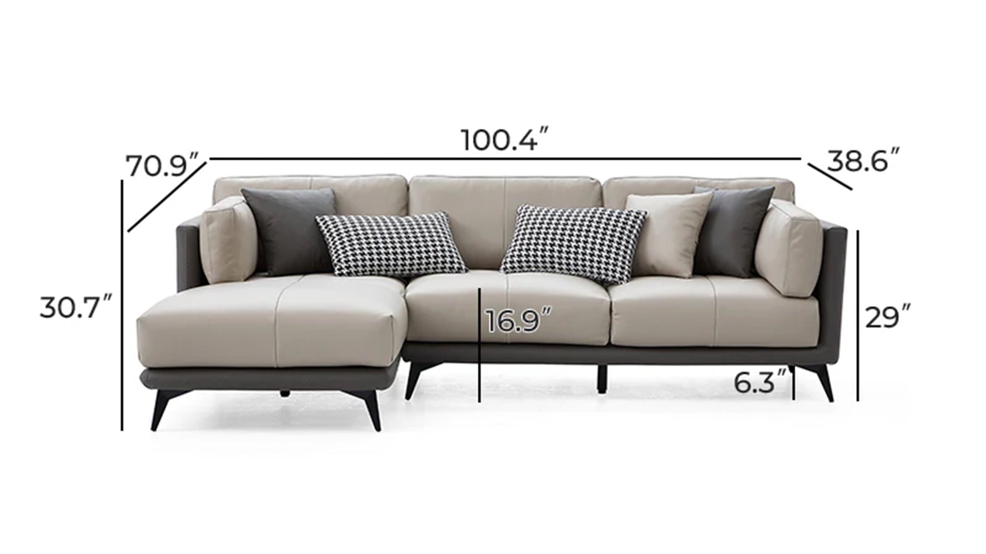 - Grey All-Leather SectionalGray / Facing Left / 100 inch