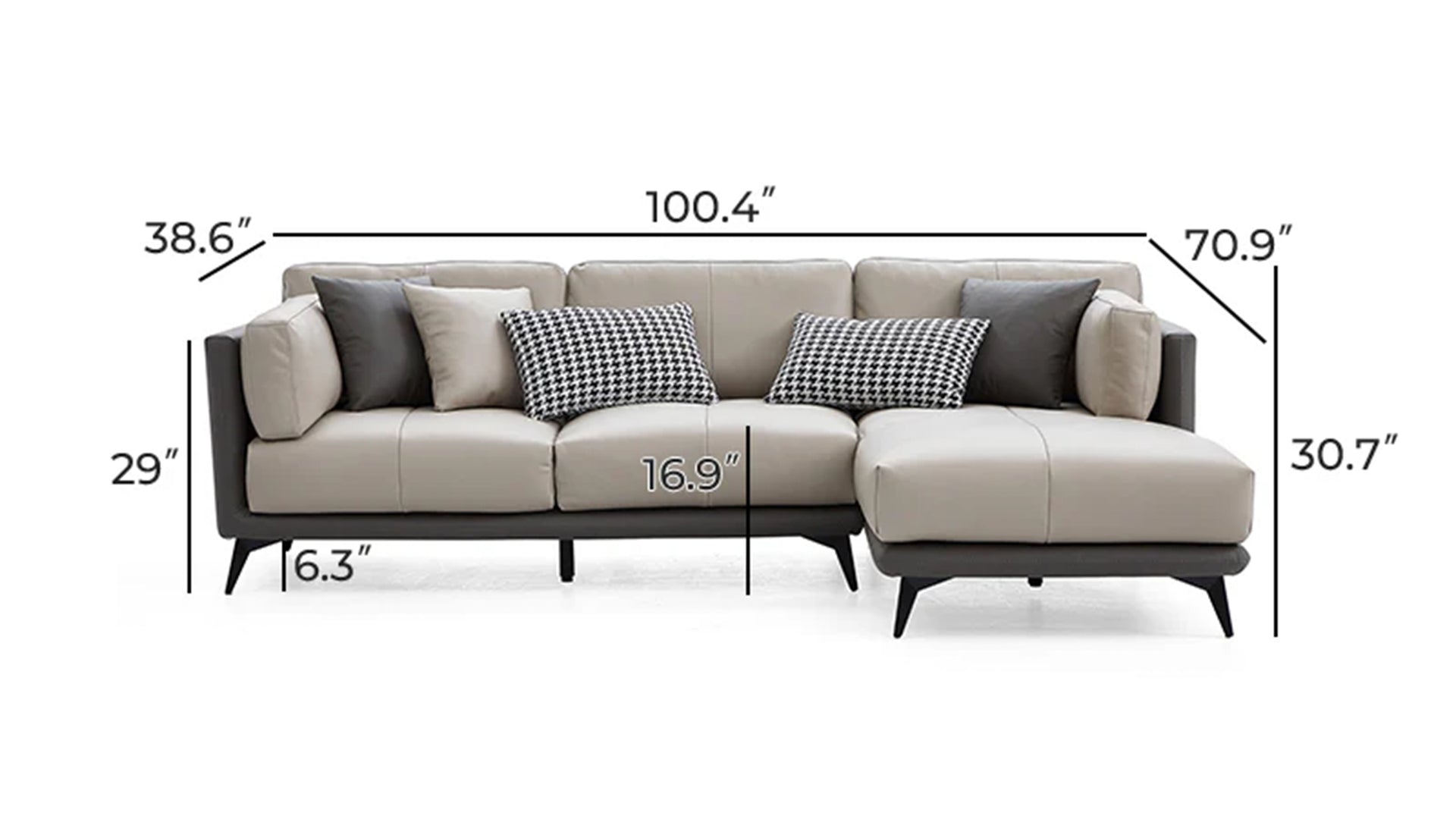- Grey All-Leather SectionalGray / Facing Right / 100 inch