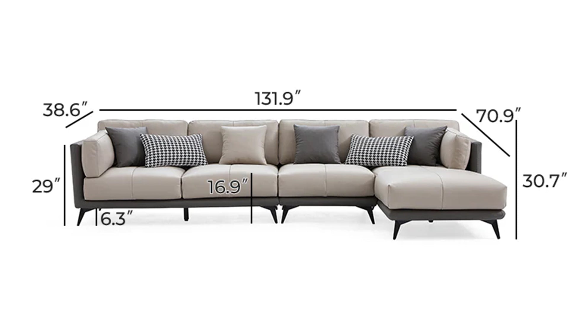 - Grey All-Leather SectionalGray / Facing Right / 132 inch