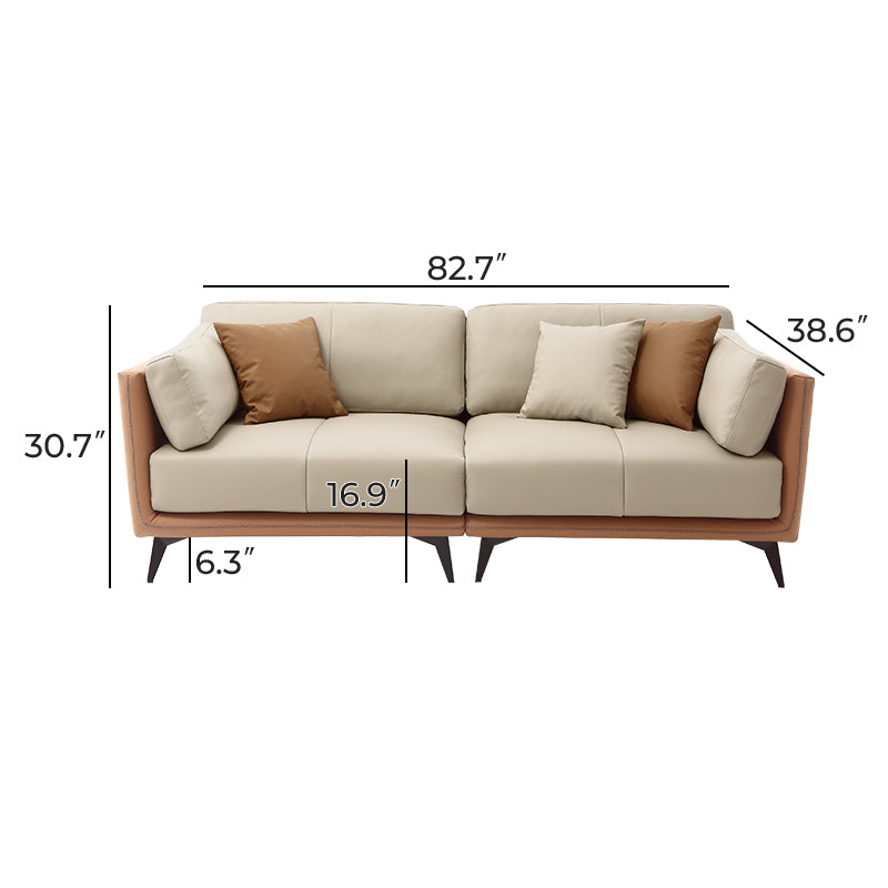 - All-Leather SofaBeige / 3 Seater 82.7 inch