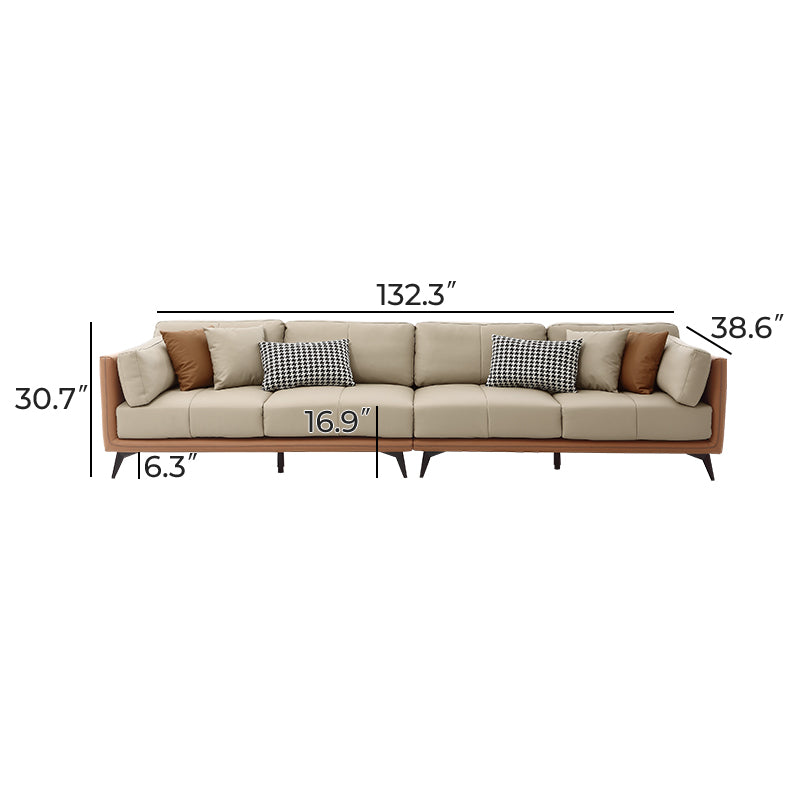 - All-Leather SofaBeige / 6 Seater 132.3 inch