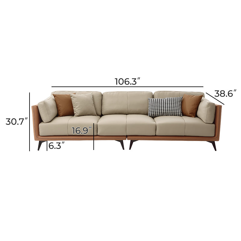 - All-Leather SofaBeige / 4 Seater 106.3 inch