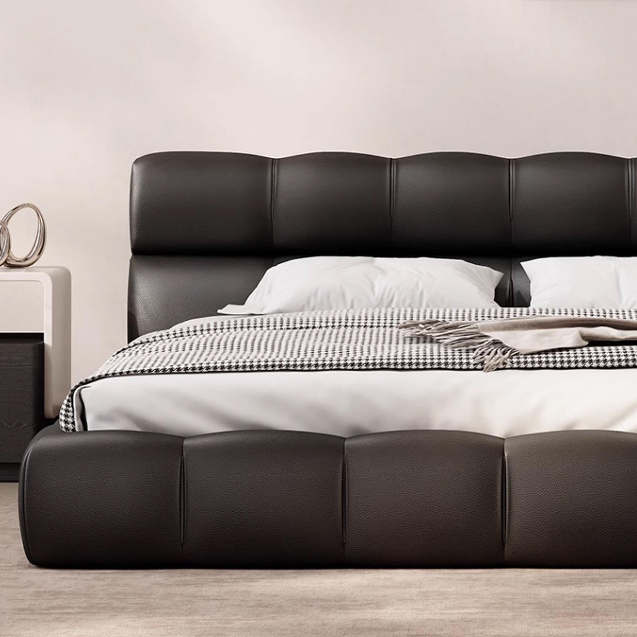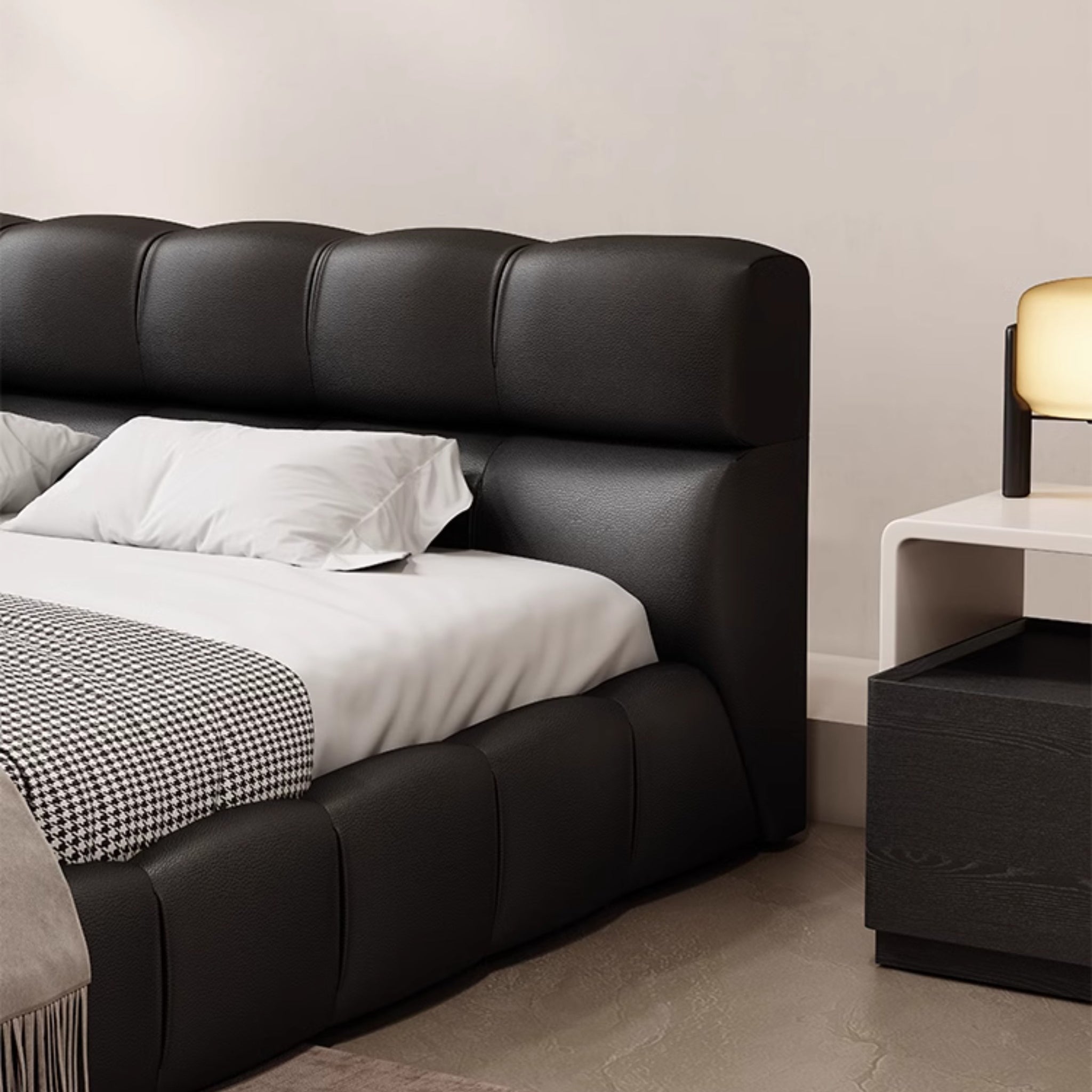 Modern Leather Bed Frame with Elegant Padded Headboard