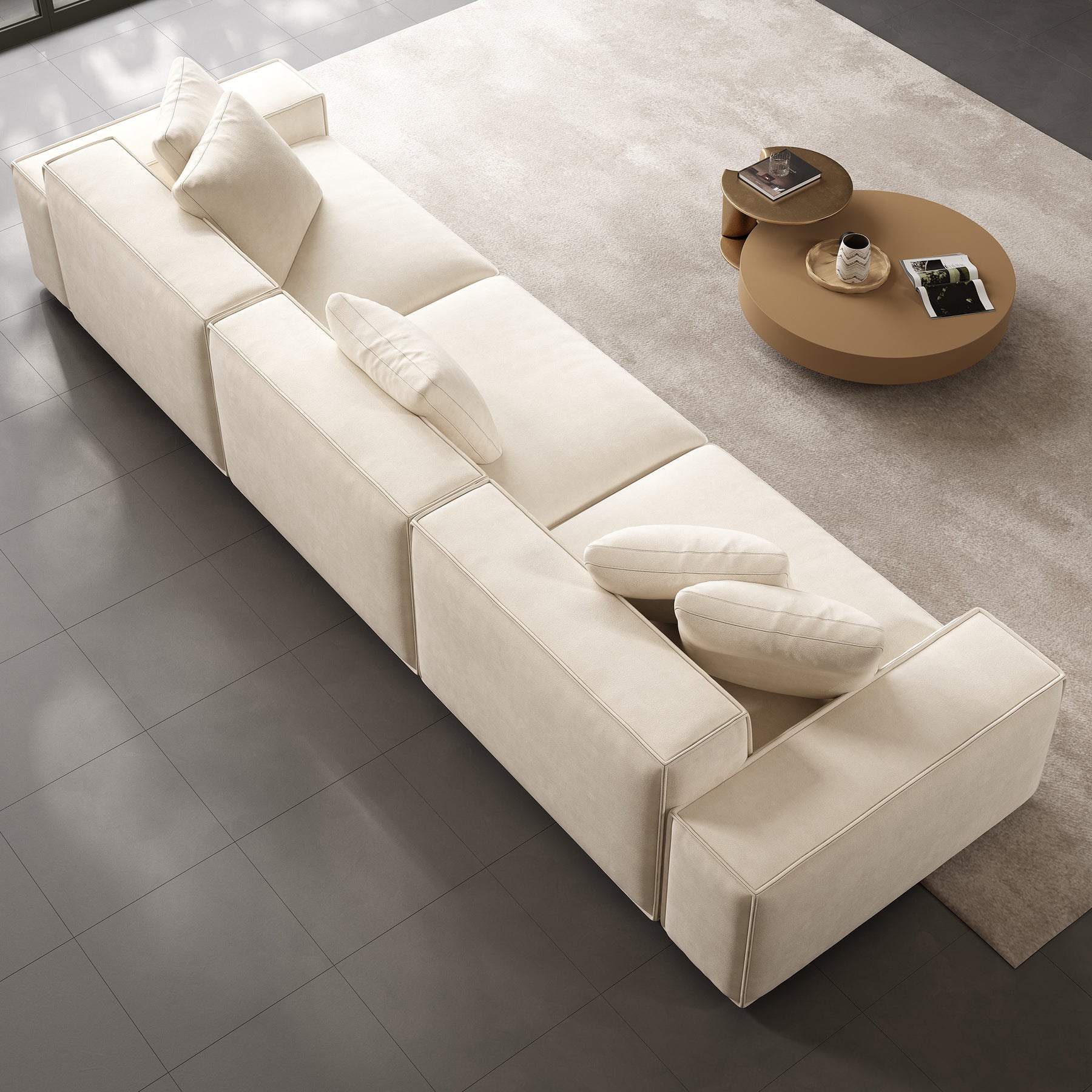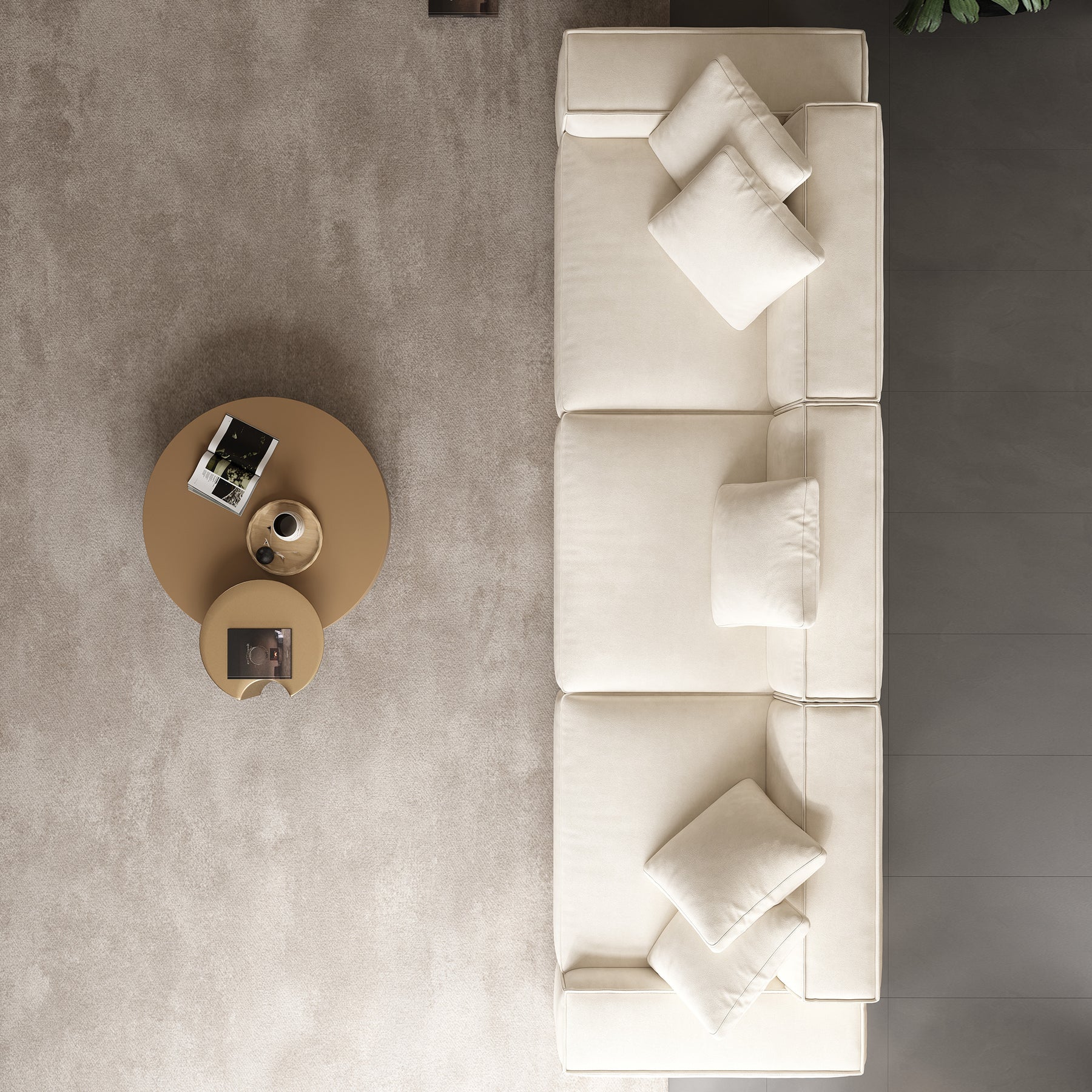 From the chrome-plated iron latch to the perennial larch wood frame, every part of our furniture is well-chosen for durability. The maximum weight capacity of Salo Pad Sofa is up to 1,000 lbs, equal to times the bodyweight of an average 6.5 human.
