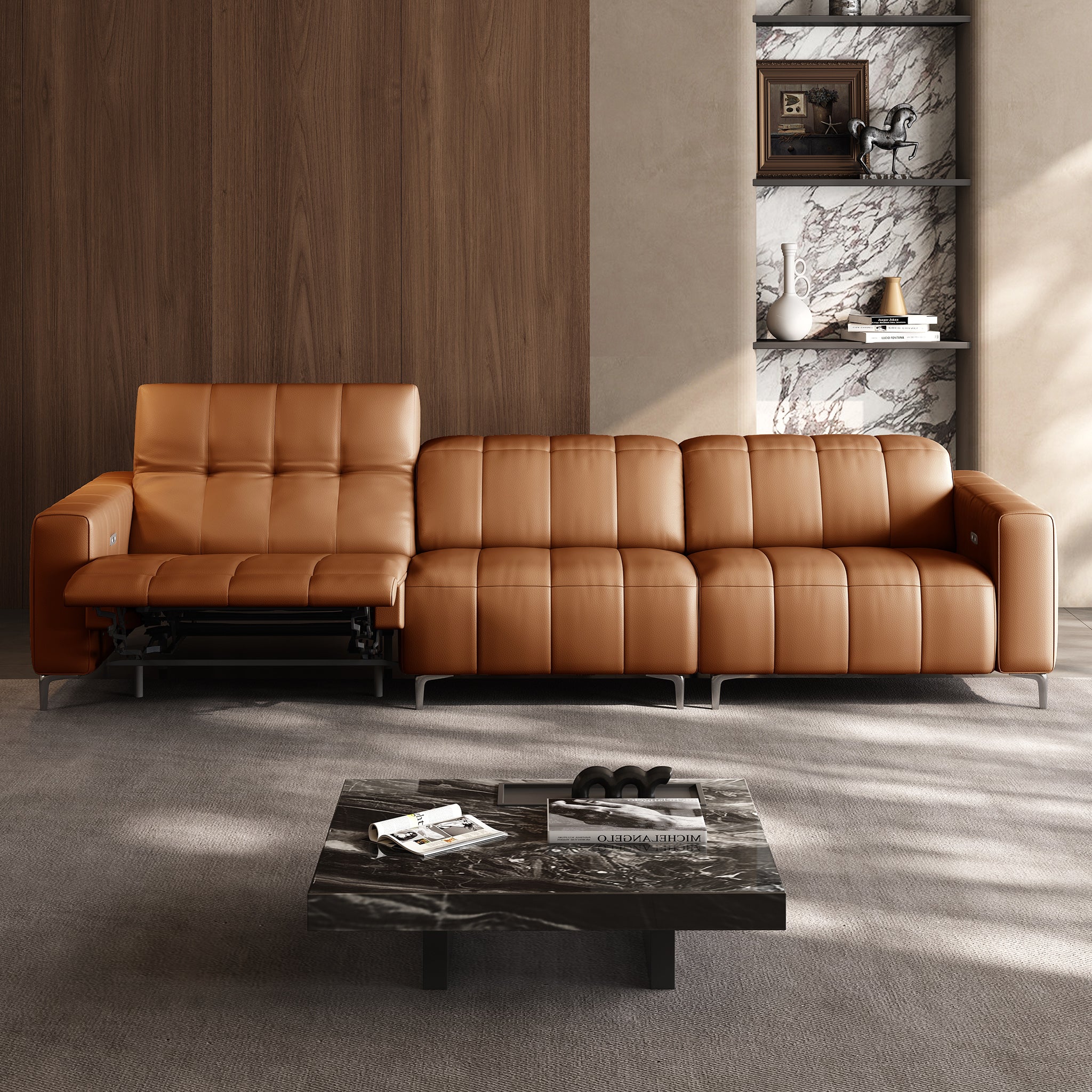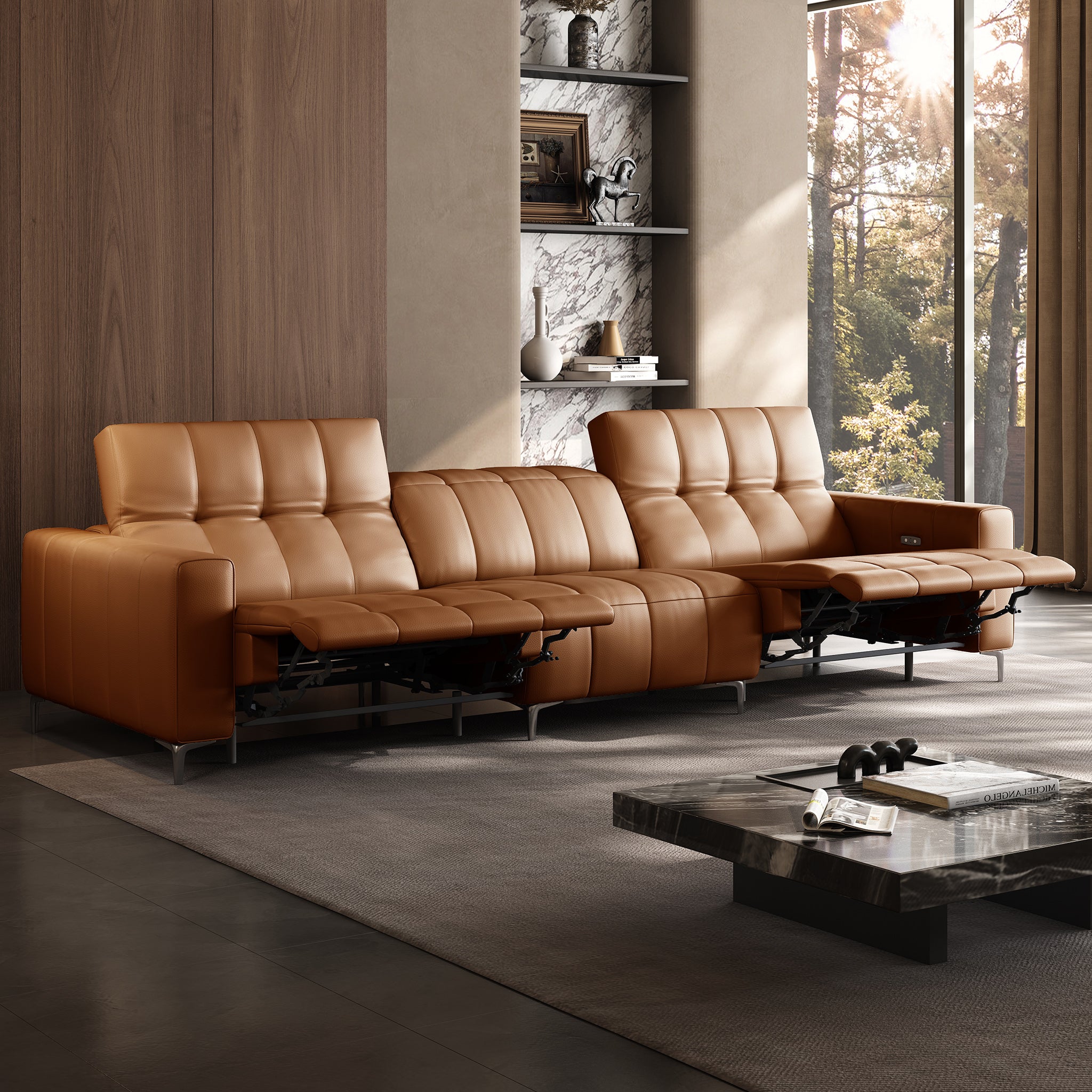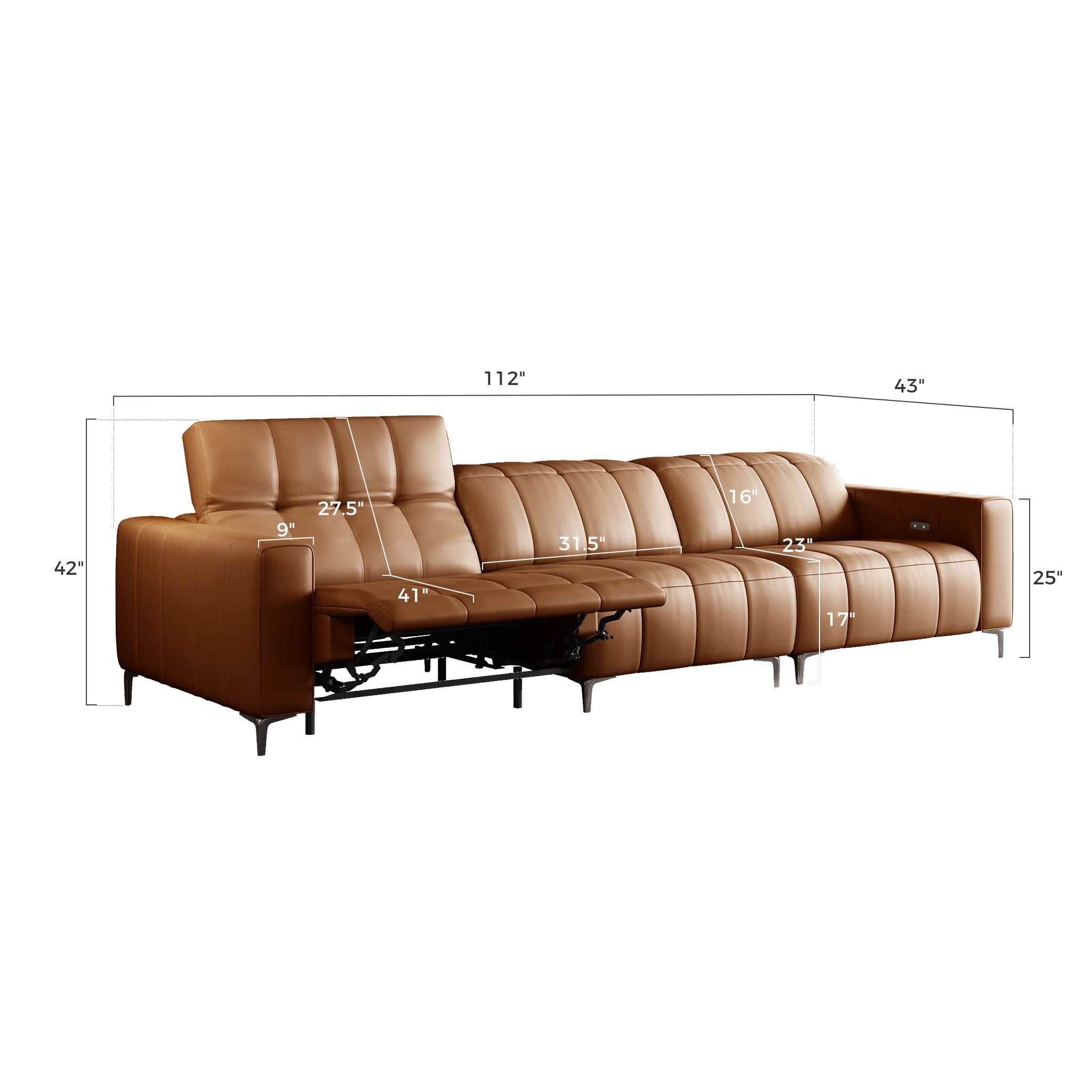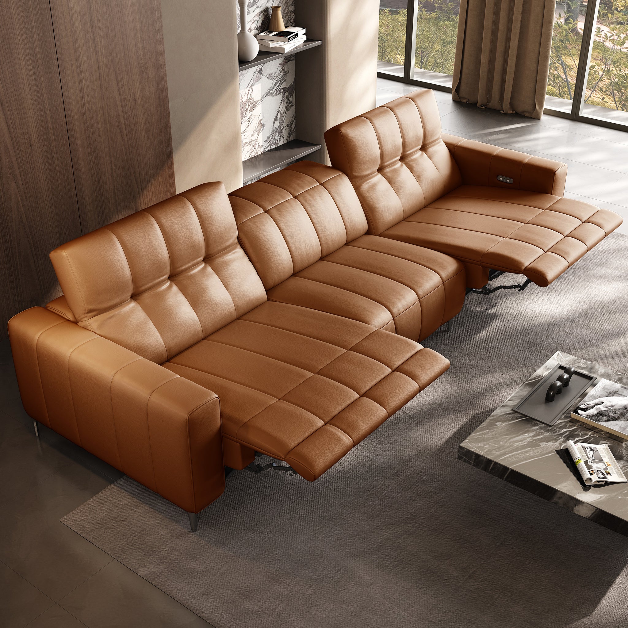• Vensley 3-Piece Dual Power Top Grain Leather Reclining SofaBrown