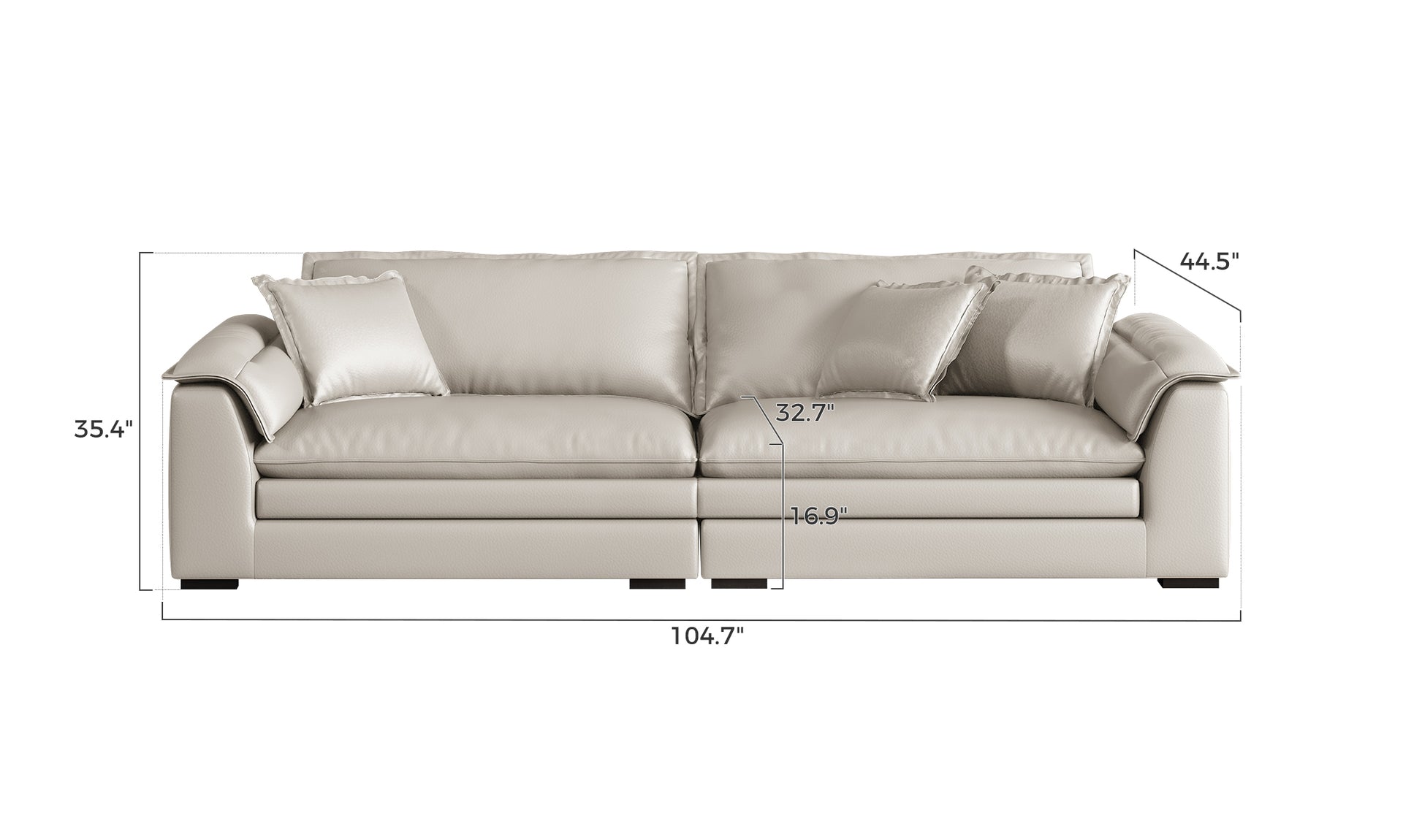 Generously filled with natural down, high-resilience foam, and soft fine-pore foam, this sofa offers outstanding comfort and support for everyday lounging.