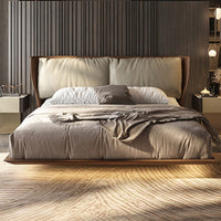 Modern Air Leather Upholstered Bed Frame with Soft Padded Headboard