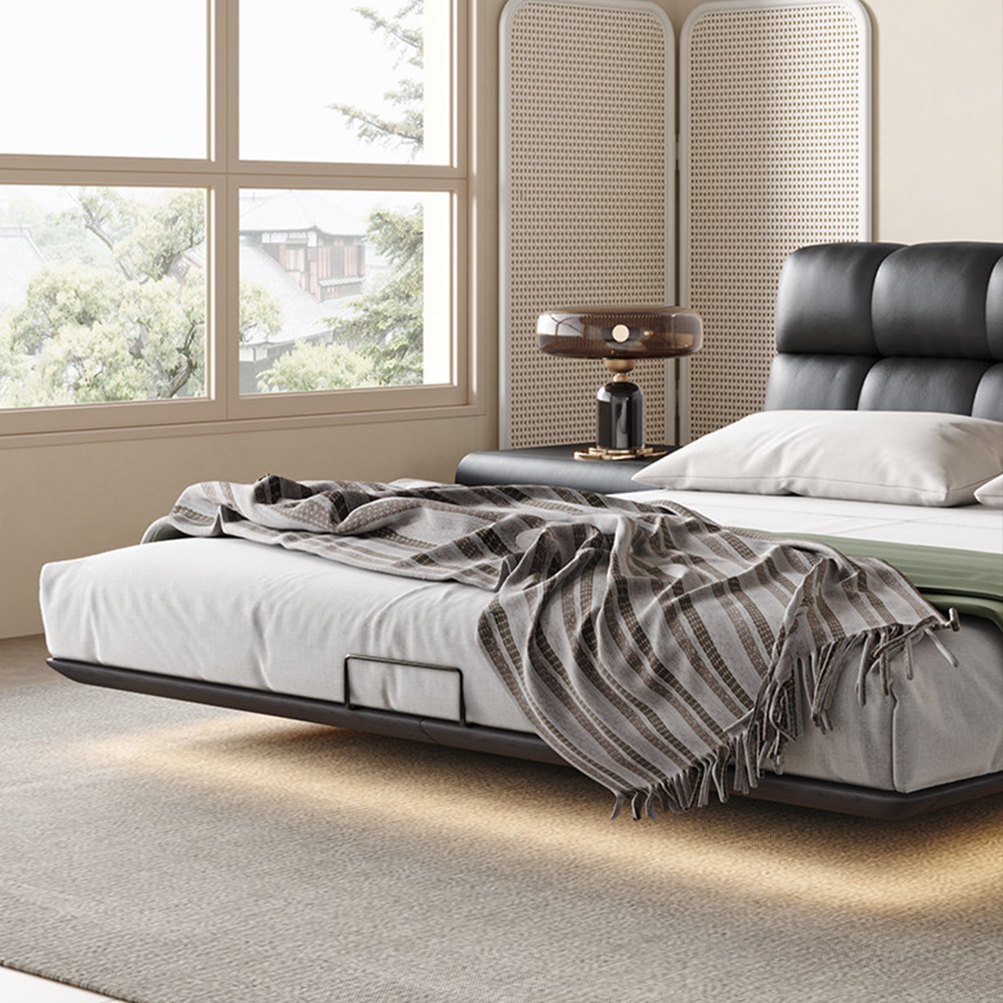Modern Minimalist Air Leather Upholstered Platform Bed with Headboard