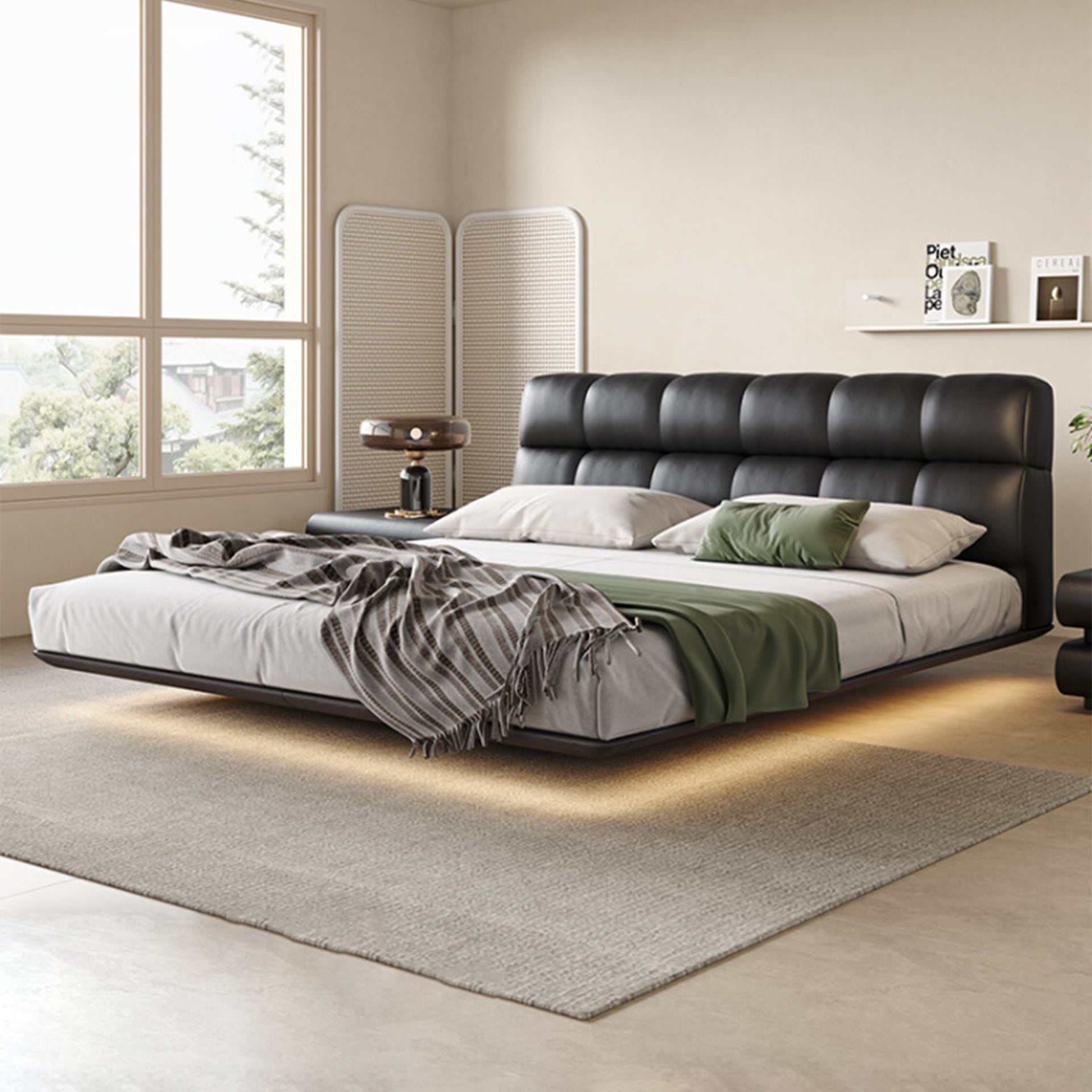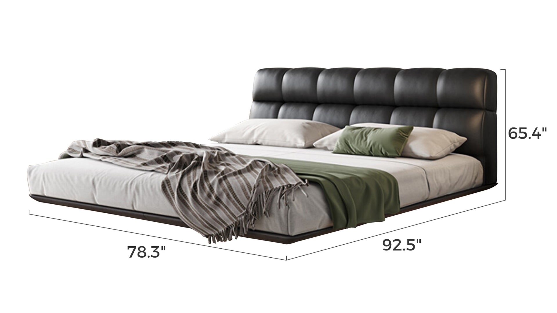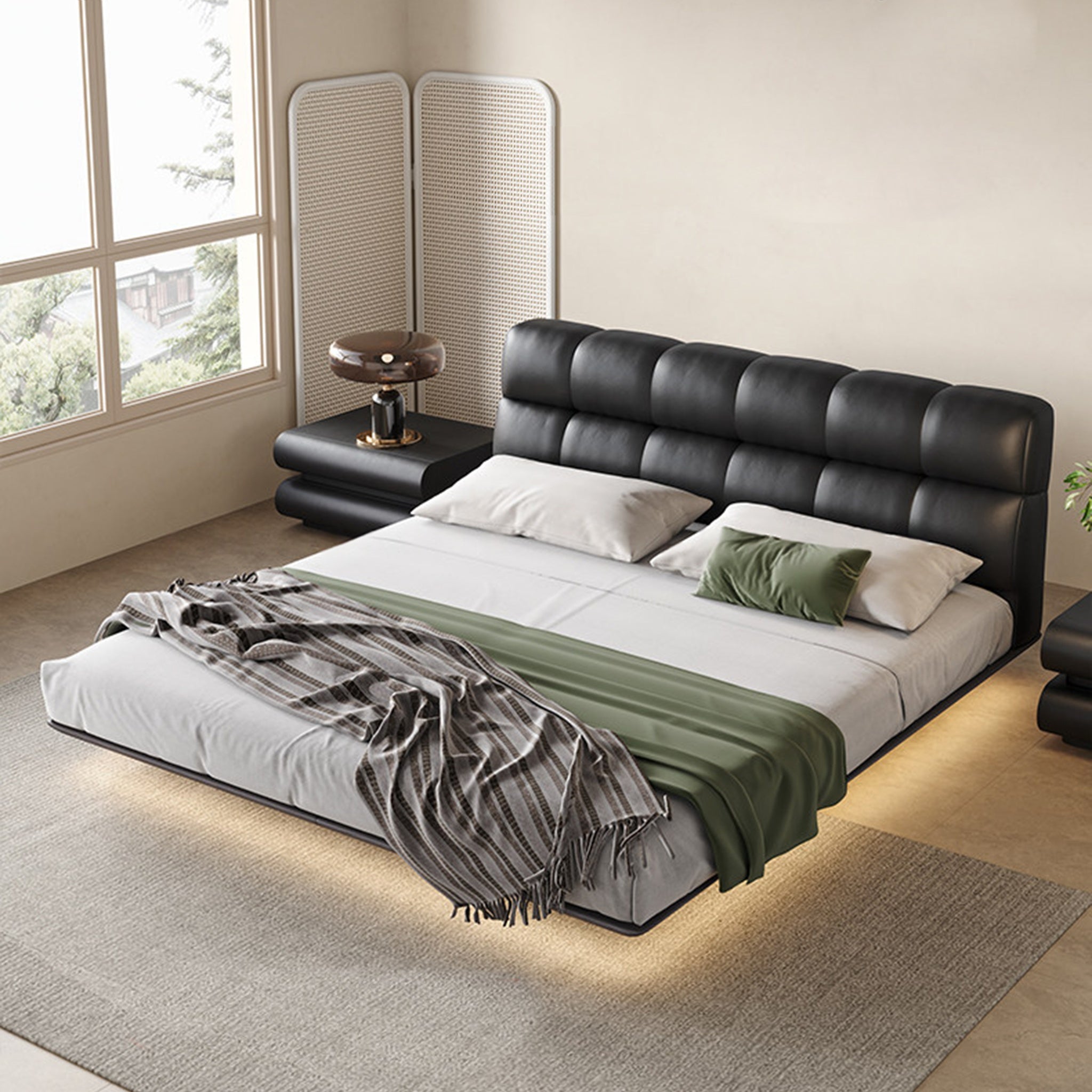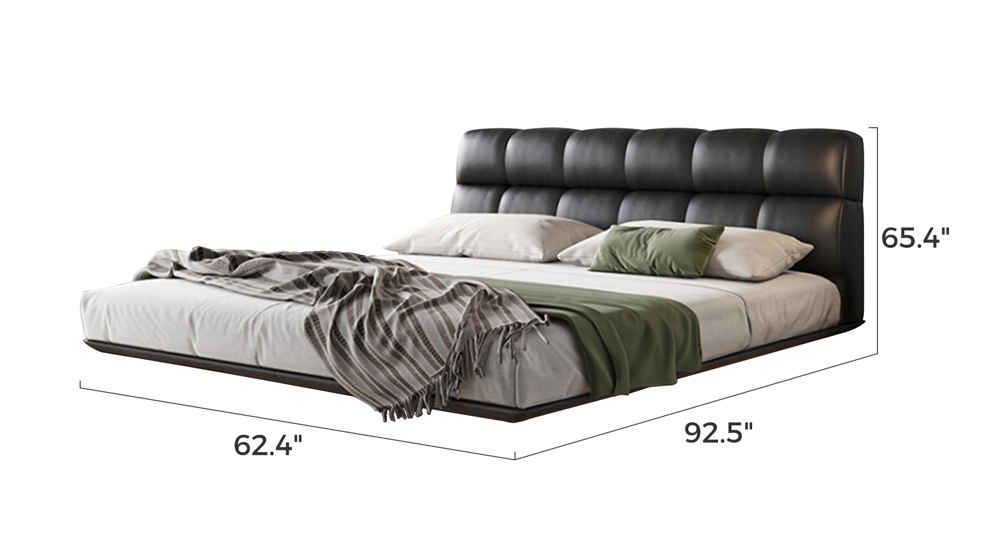 Modern Minimalist Air Leather Upholstered Platform Bed with Headboard