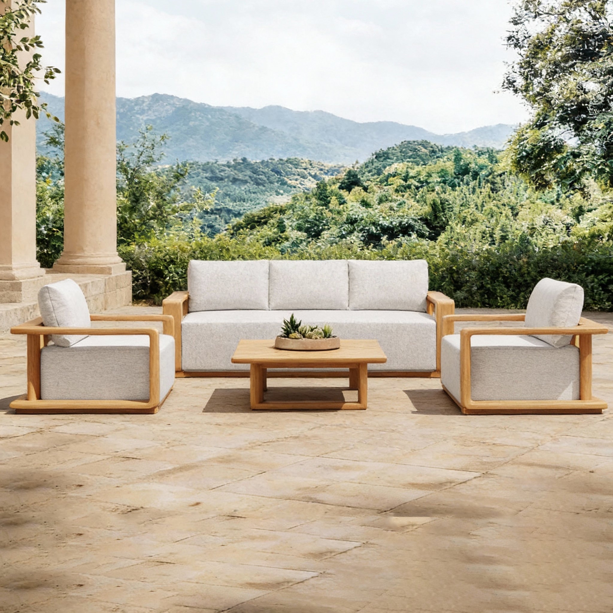 Airmont Teak Outdoor Lounge Set - White / Loveseat
