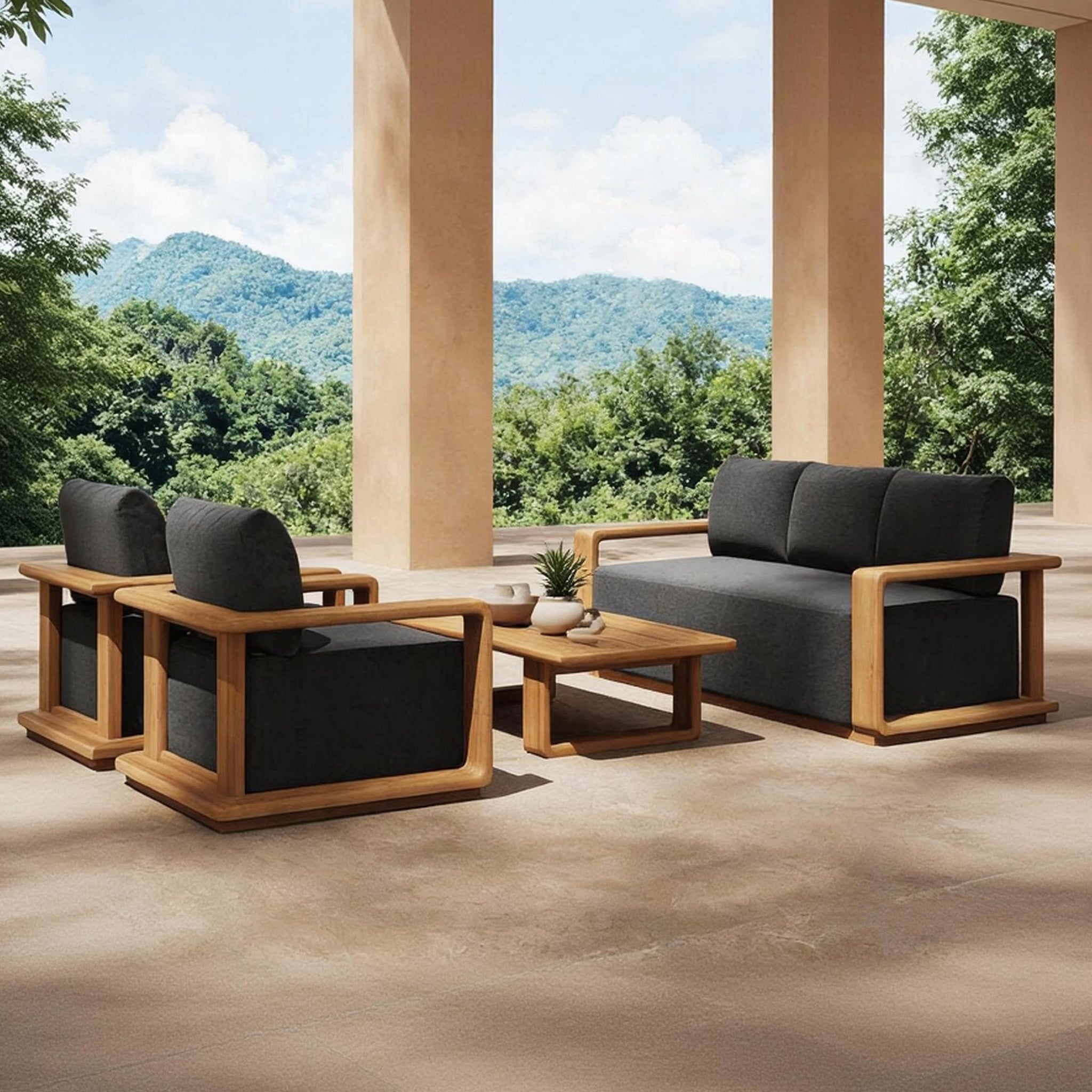 Airmont Teak Outdoor Lounge Set - Gray / Loveseat
