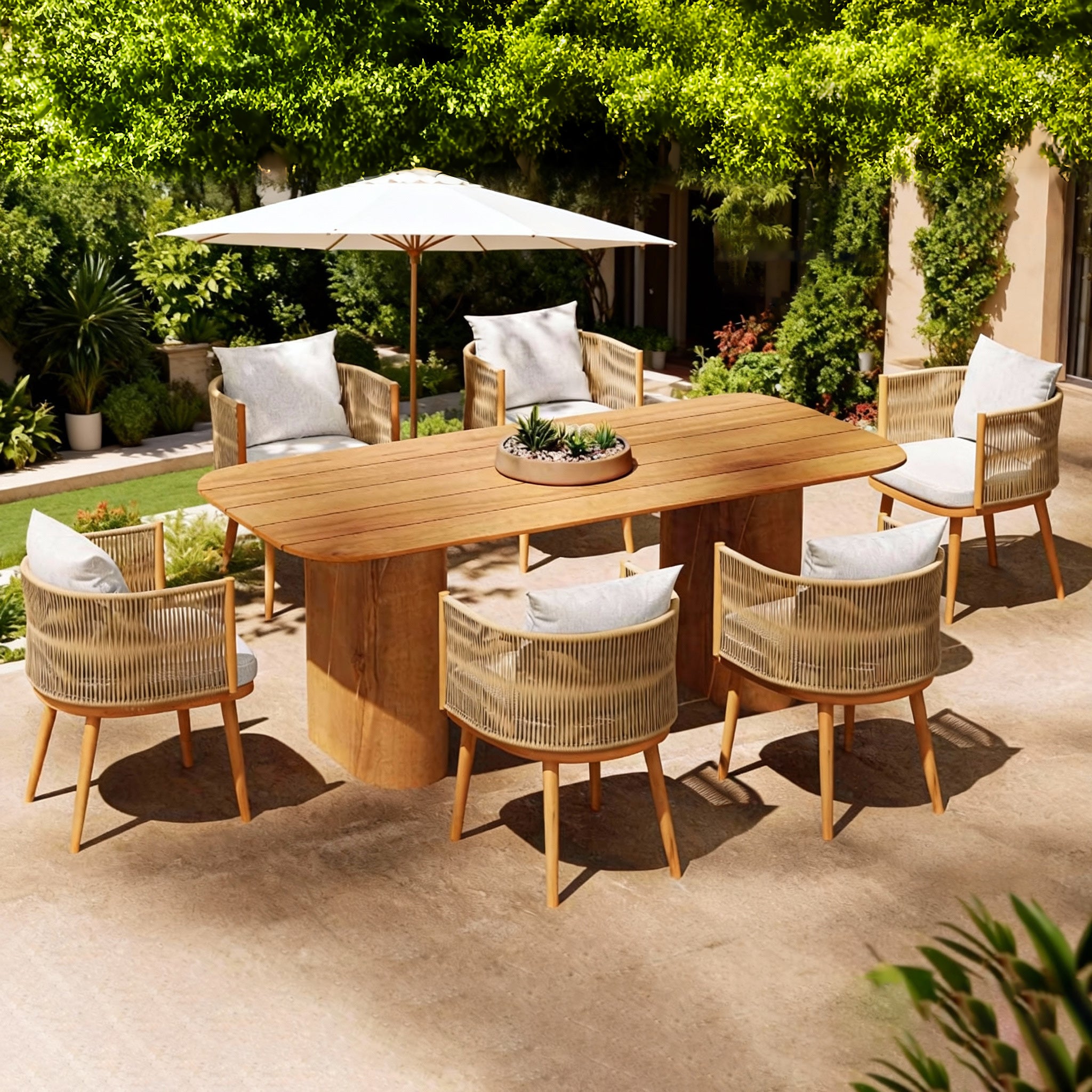 Tavo Teak Outdoor Dining Set - Natural Wood / Table