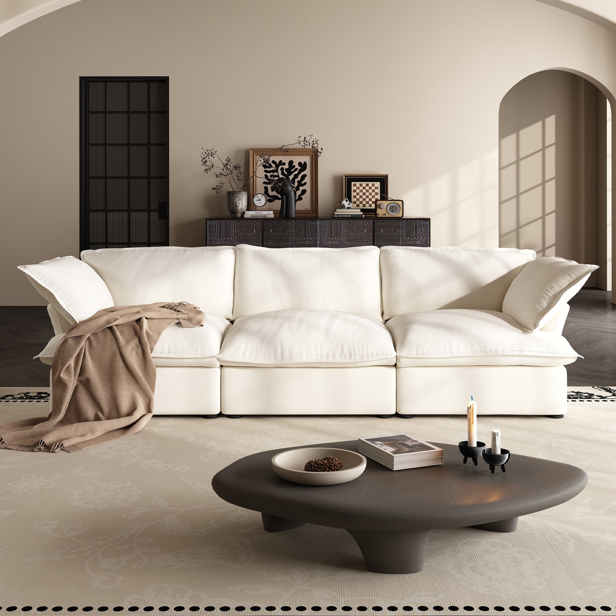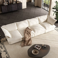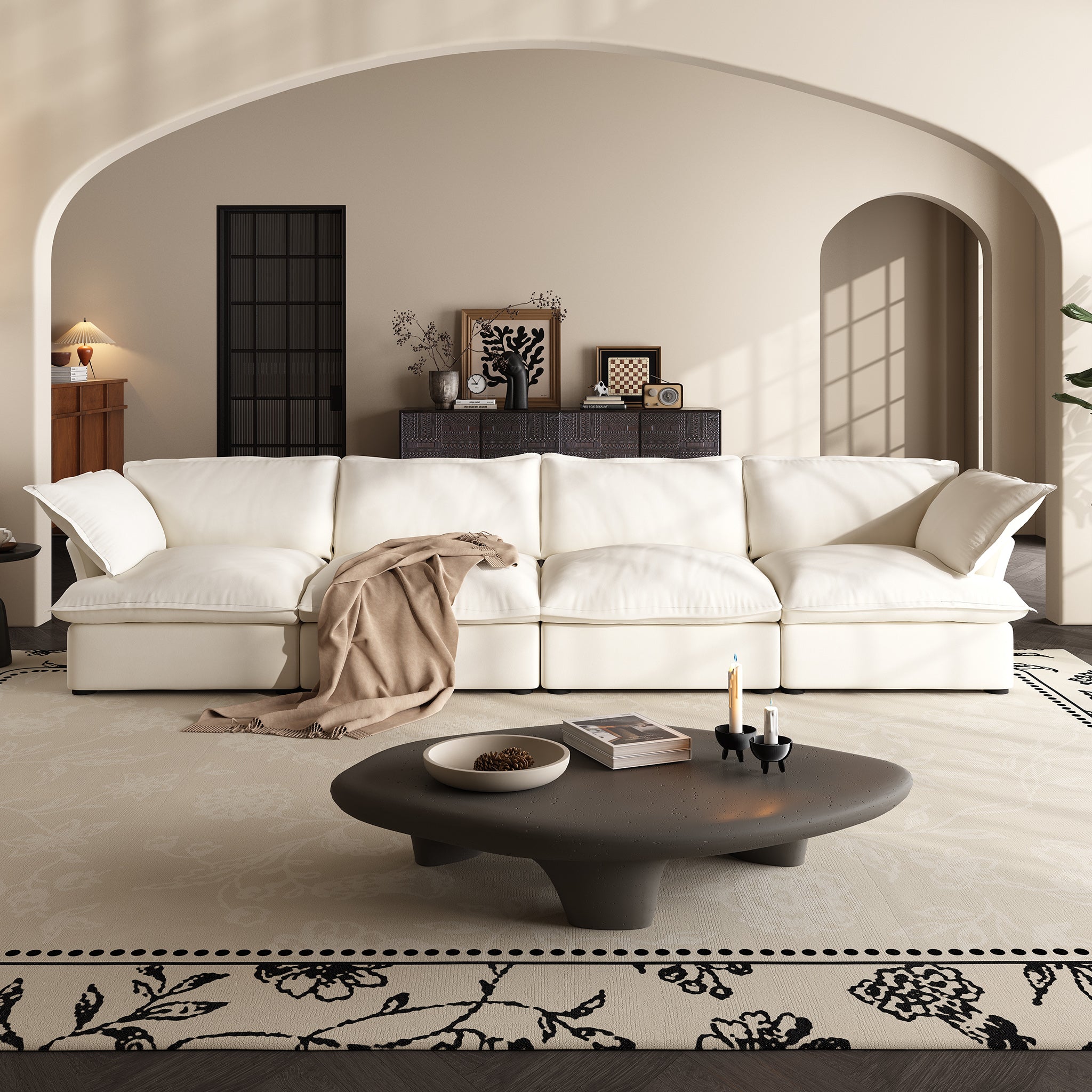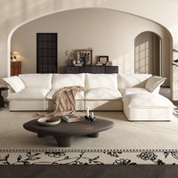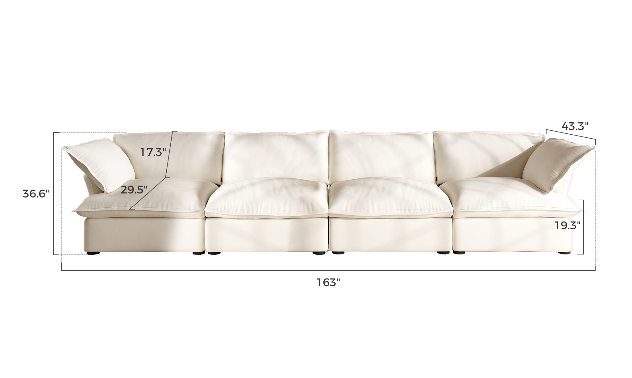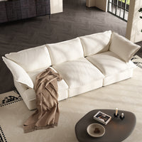 The sofa's armrest and backrest feature a premium down-cotton hybrid filling, delivering unparalleled plushness and lasting comfort.