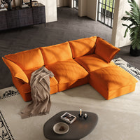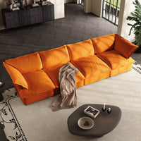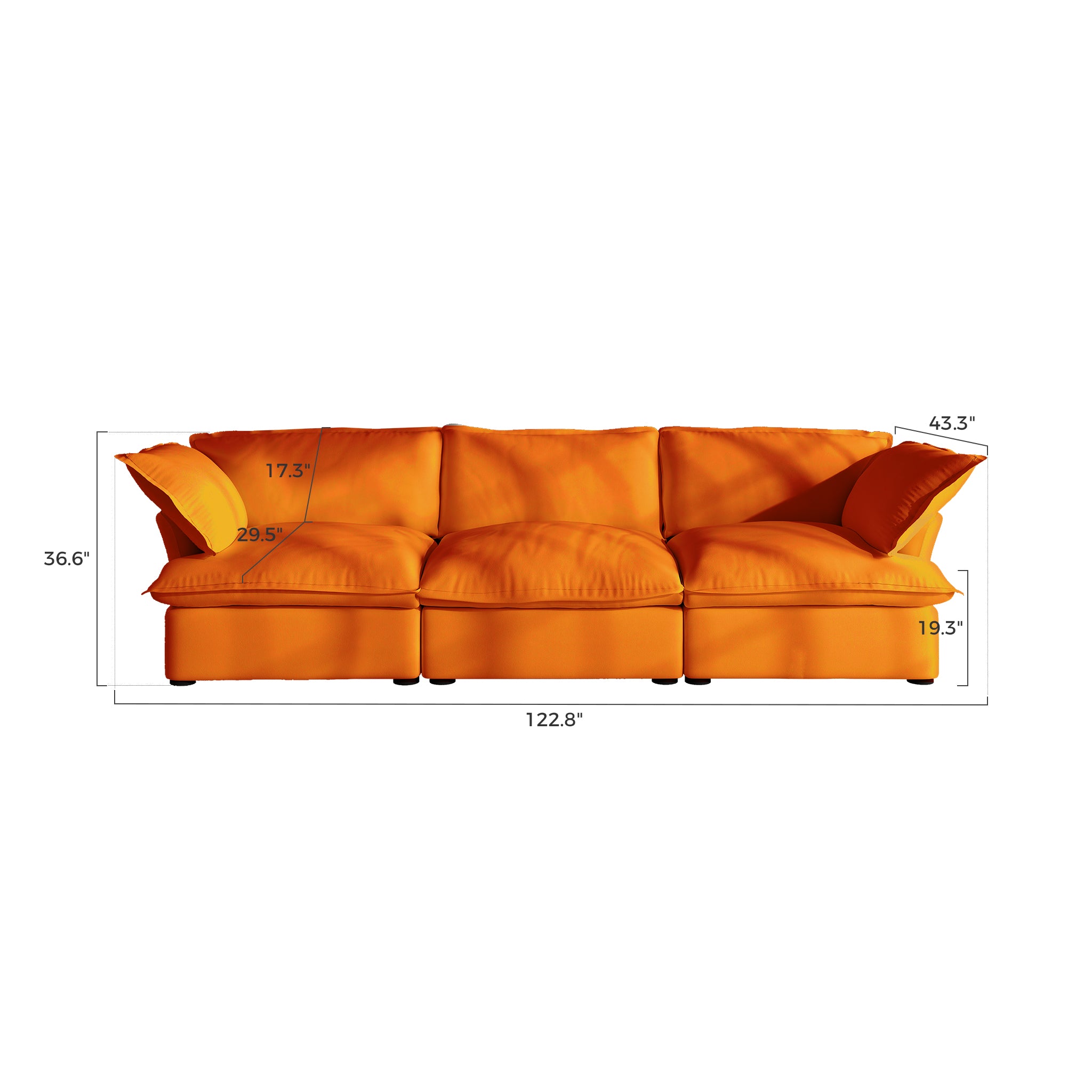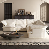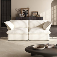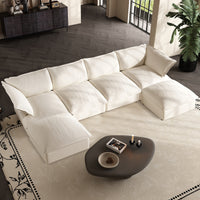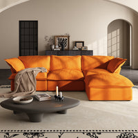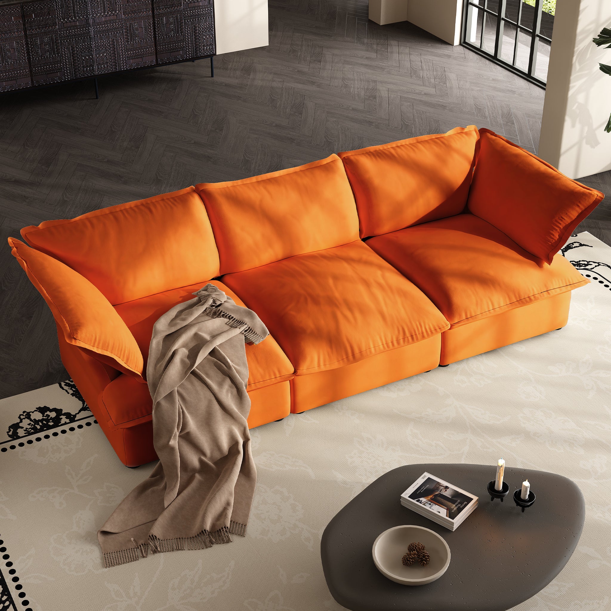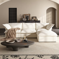 The sofa's armrest and backrest feature a premium down-cotton hybrid filling, delivering unparalleled plushness and lasting comfort.