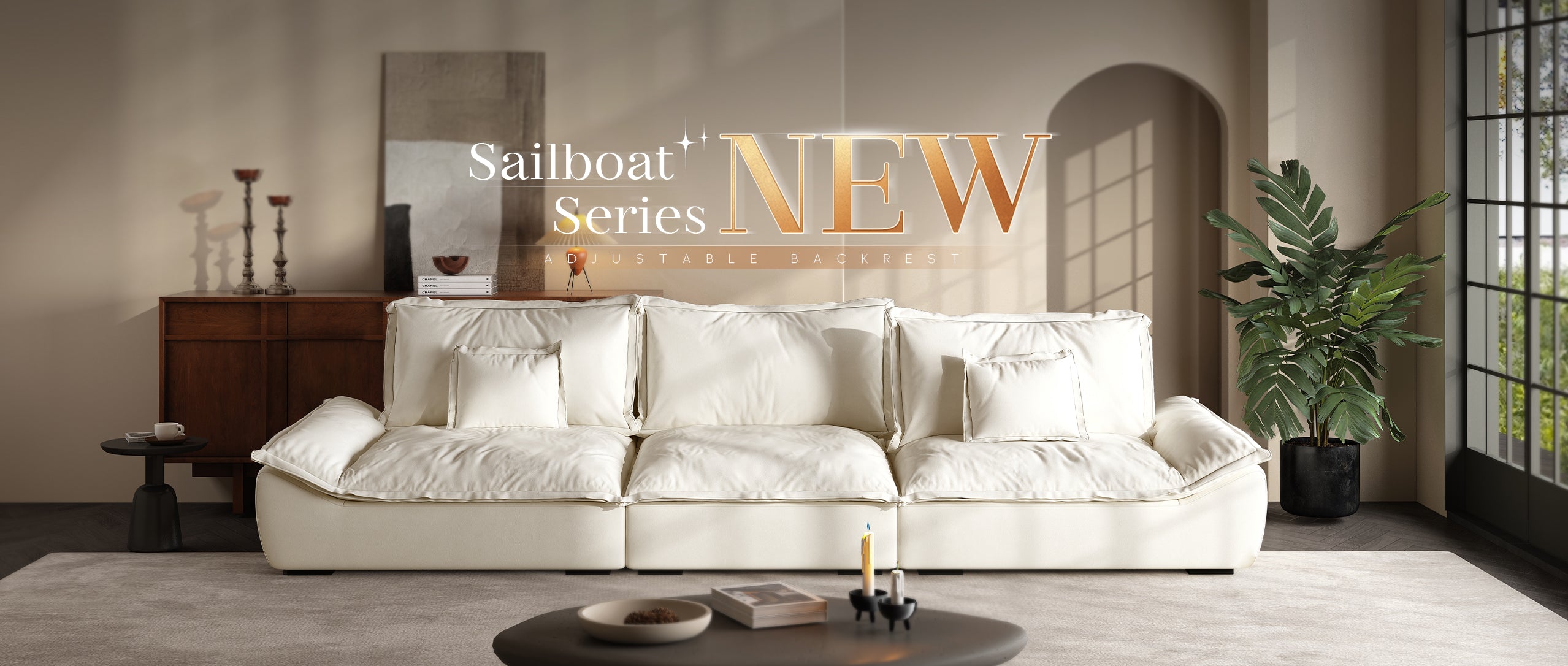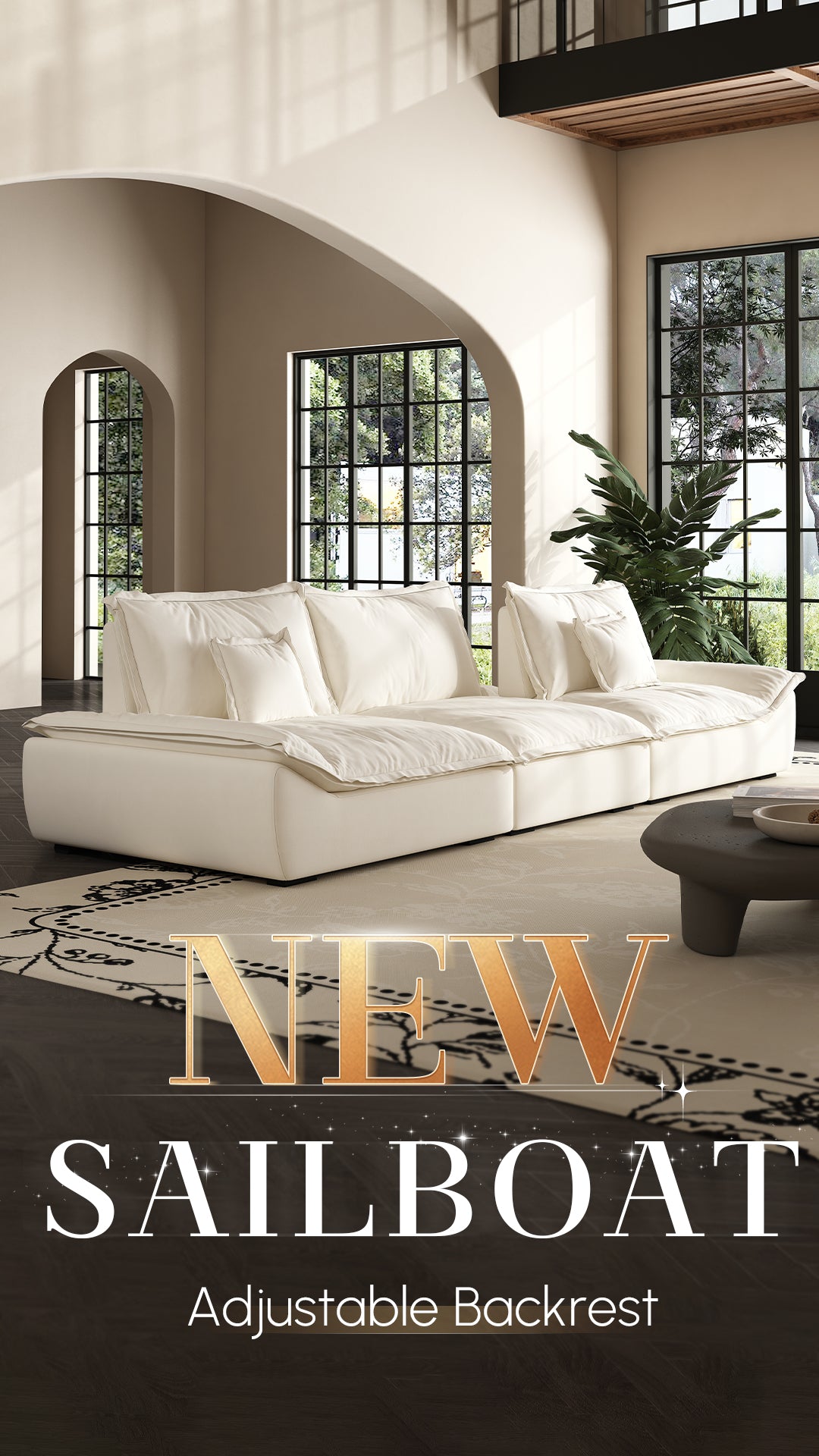 Sailboat Extra Deep Seat Leather Sofa with Adjustable Backrest-Beige / 139.76 inch