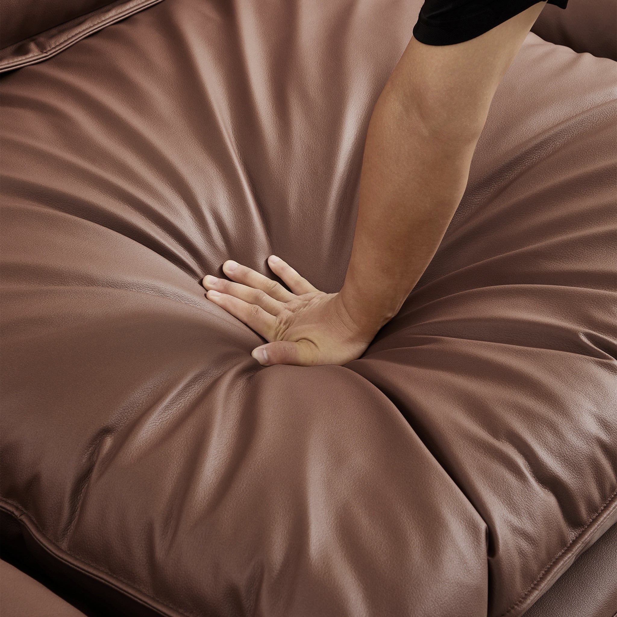 The reason is simple! Just like buying a sandwich, you can decide the order of ingredients and enjoy the rich taste in one bite. That’s why we ask you to consider this excellent reclining sofa that allows customized comfort through its changeable cushion configurations - it is a Four-in-One sofa. Each seat consists of 2 cushions: a soft feather cushion and a bouncy foam cushion. By combining the cushions as you wish, you can get four sofa for the price of one. It is not only suitable for various spaces, but also brings your family four types of enjoyment.