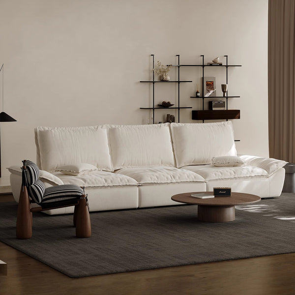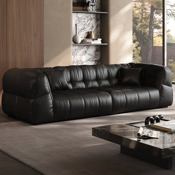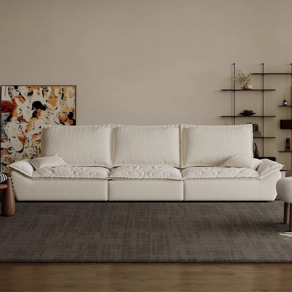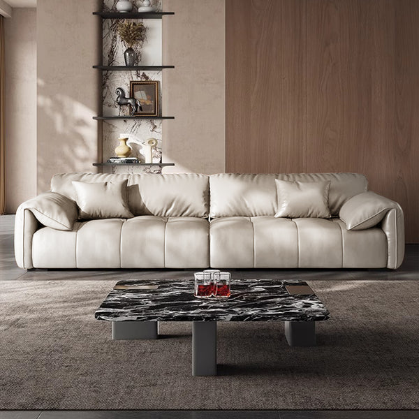 Sailboat Extra Deep Seat Leather Sofa with Adjustable Backrest-Beige / 139.76 inch