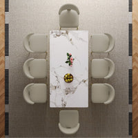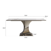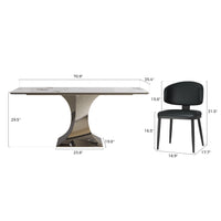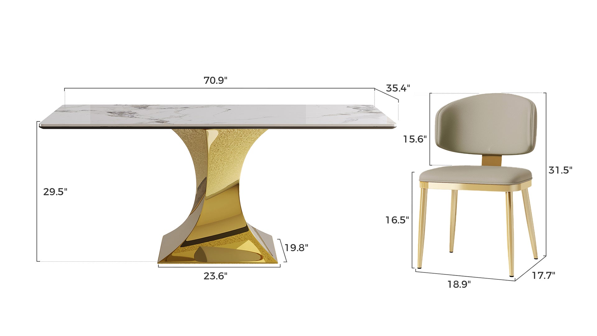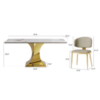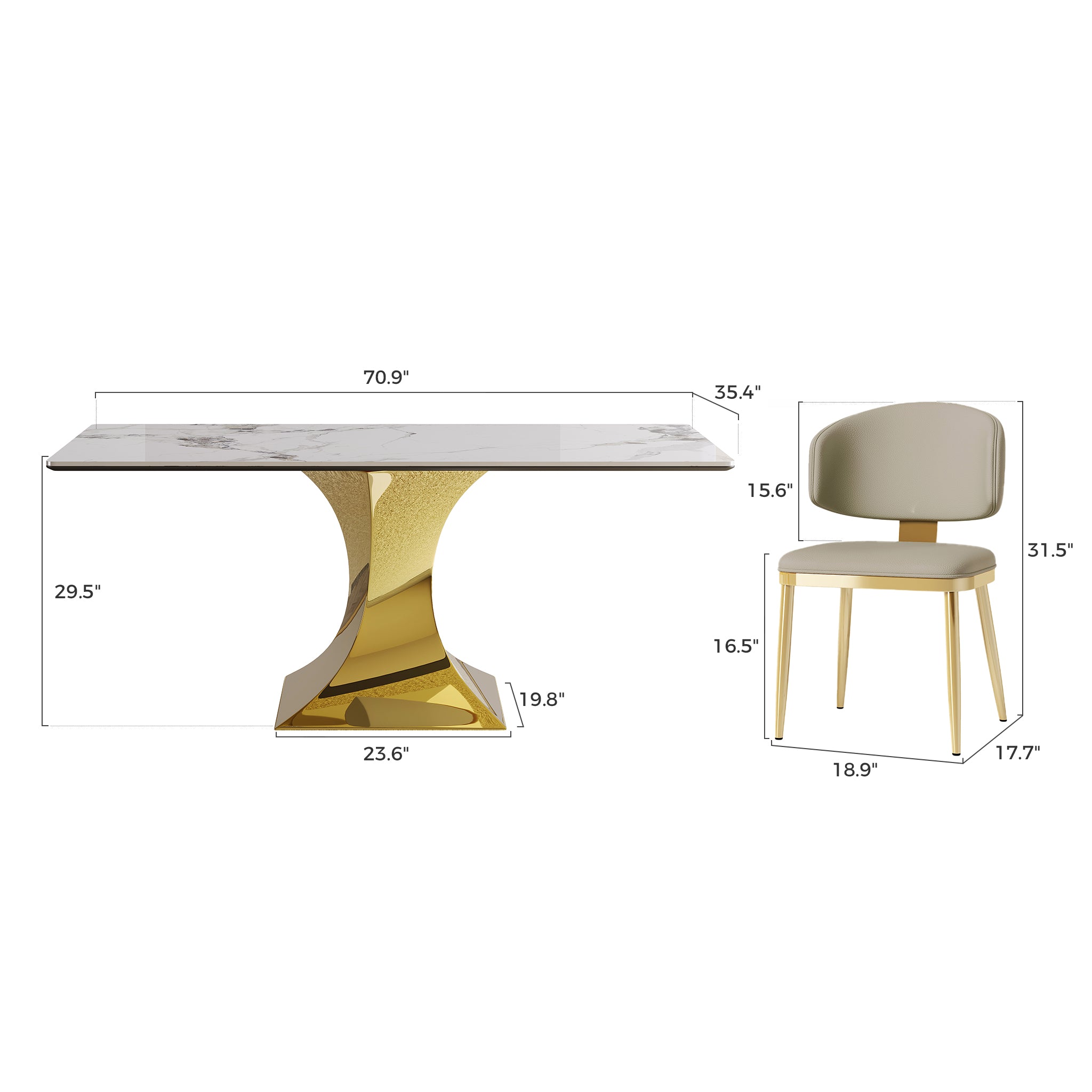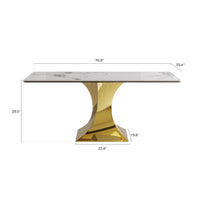 • Luxury Modern Rectangular Dining Table, White Glossy Sintered Stone Top with Sturdy Stainless Steel BaseWhite / Gold / 71" Table