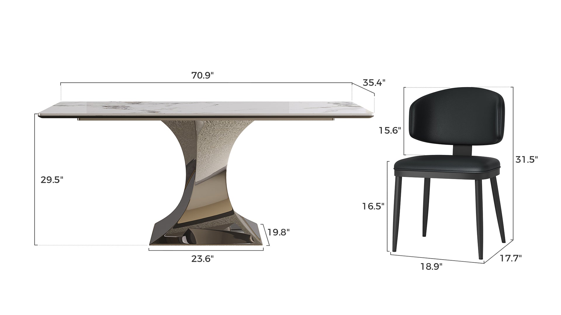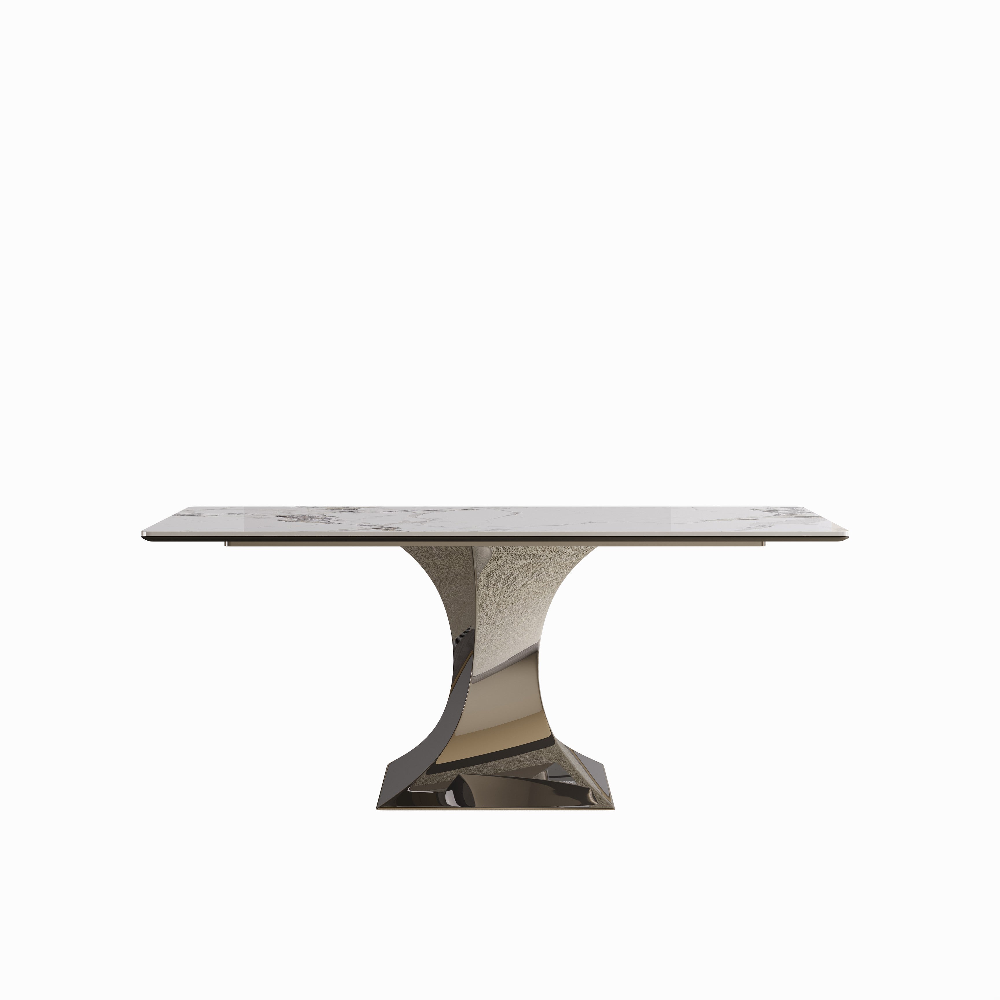 The sintered stone surface is scratch-resistant, heat-resistant, and stain-proof. A quick wipe is all it takes to keep the table looking pristine with minimal effort.