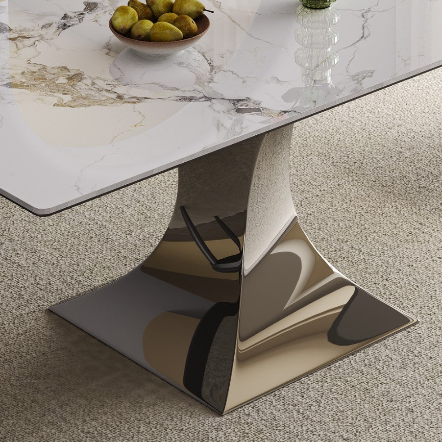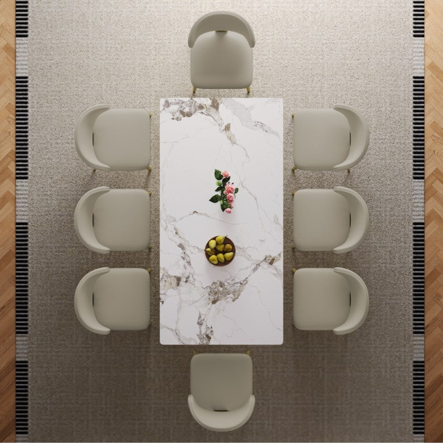 Luxury Modern Rectangular Dining Table, White Glossy Sintered Stone Top with Sturdy Stainless Steel Base