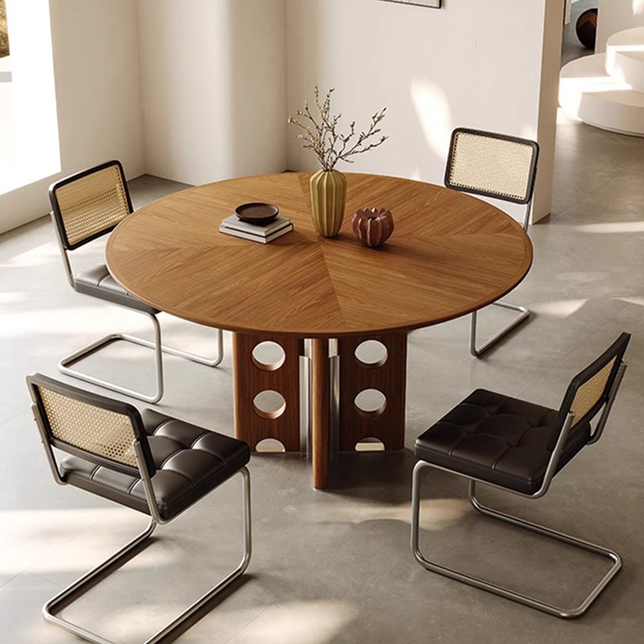 Crafted from high-quality solid wood, this round dining table offers natural grain beauty, exceptional durability, and timeless appeal. Its smooth finish enhances any dining room with a warm, inviting look.