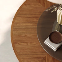 Modern Luxury Round Dining Table for 4, Stainless Steel and Wood Base