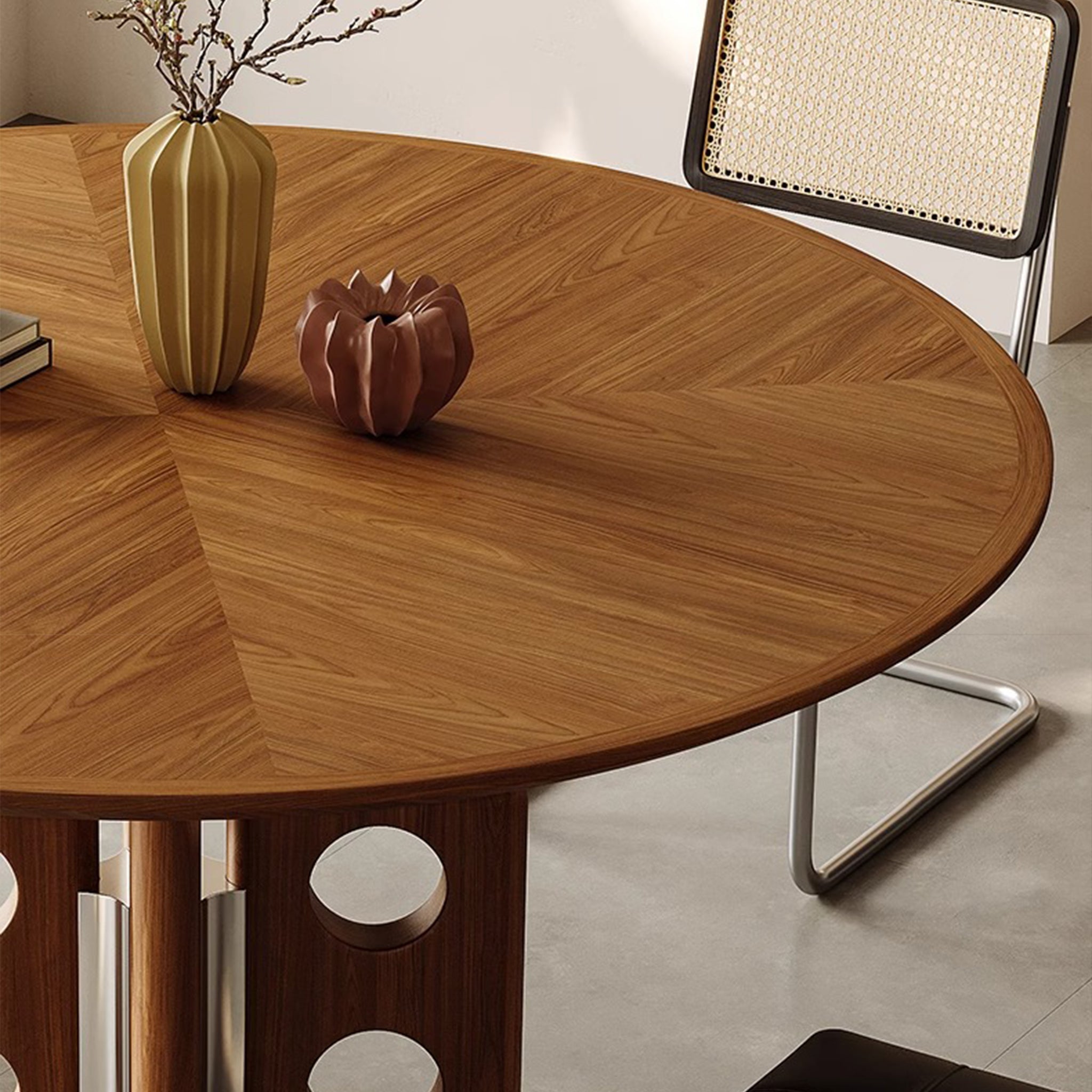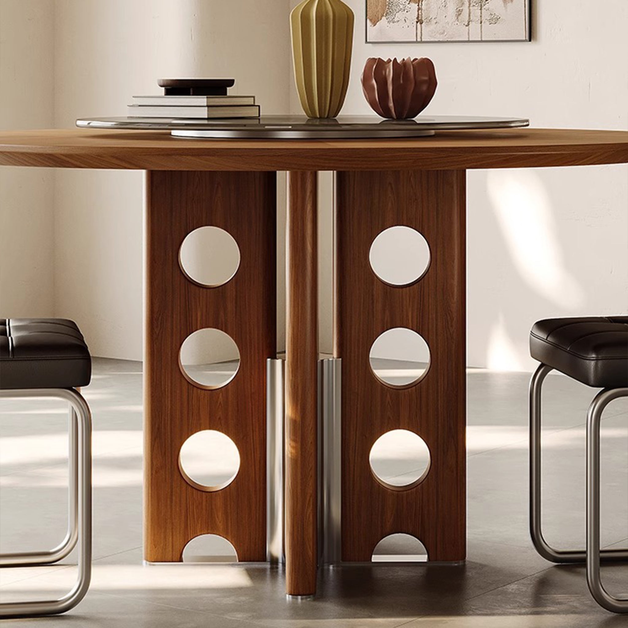 • Modern Luxury Round Dining Table for 4, Stainless Steel and Wood BaseWalnut / 47" Table
