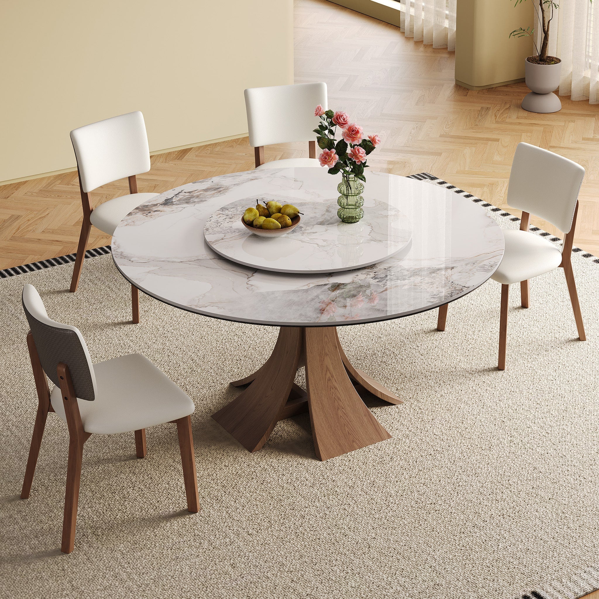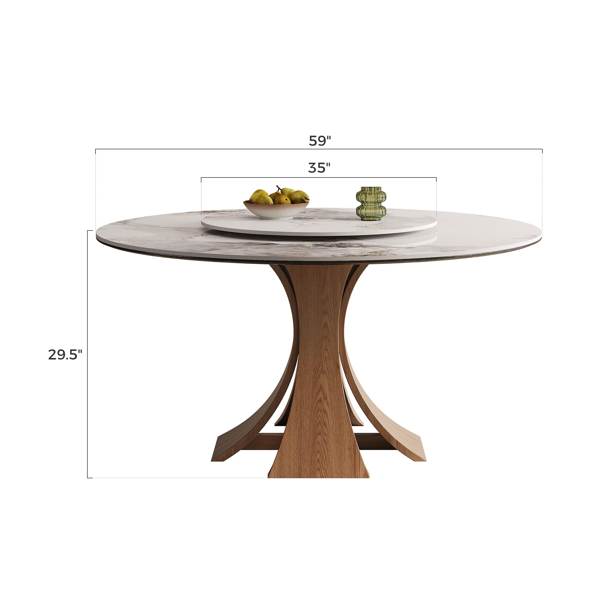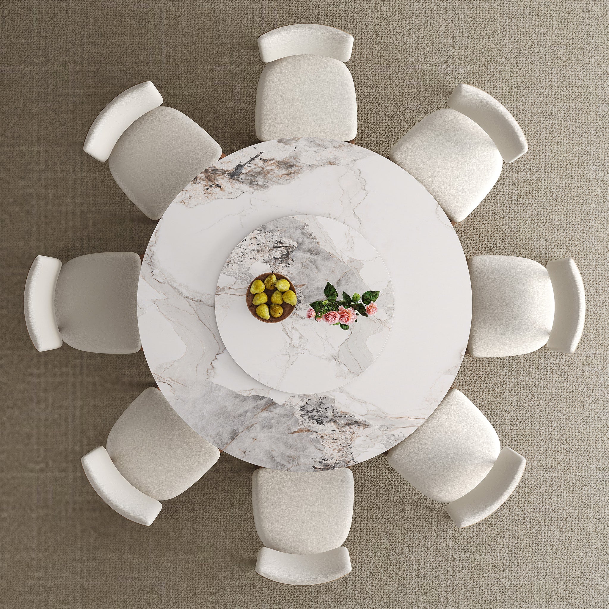 • Modern Mid-Century Round Dining Table with Sintered Stone Top, Seats 6-8, Durable Scratch-Resistant DesignPandora / 59" Table / with Lazy Susan