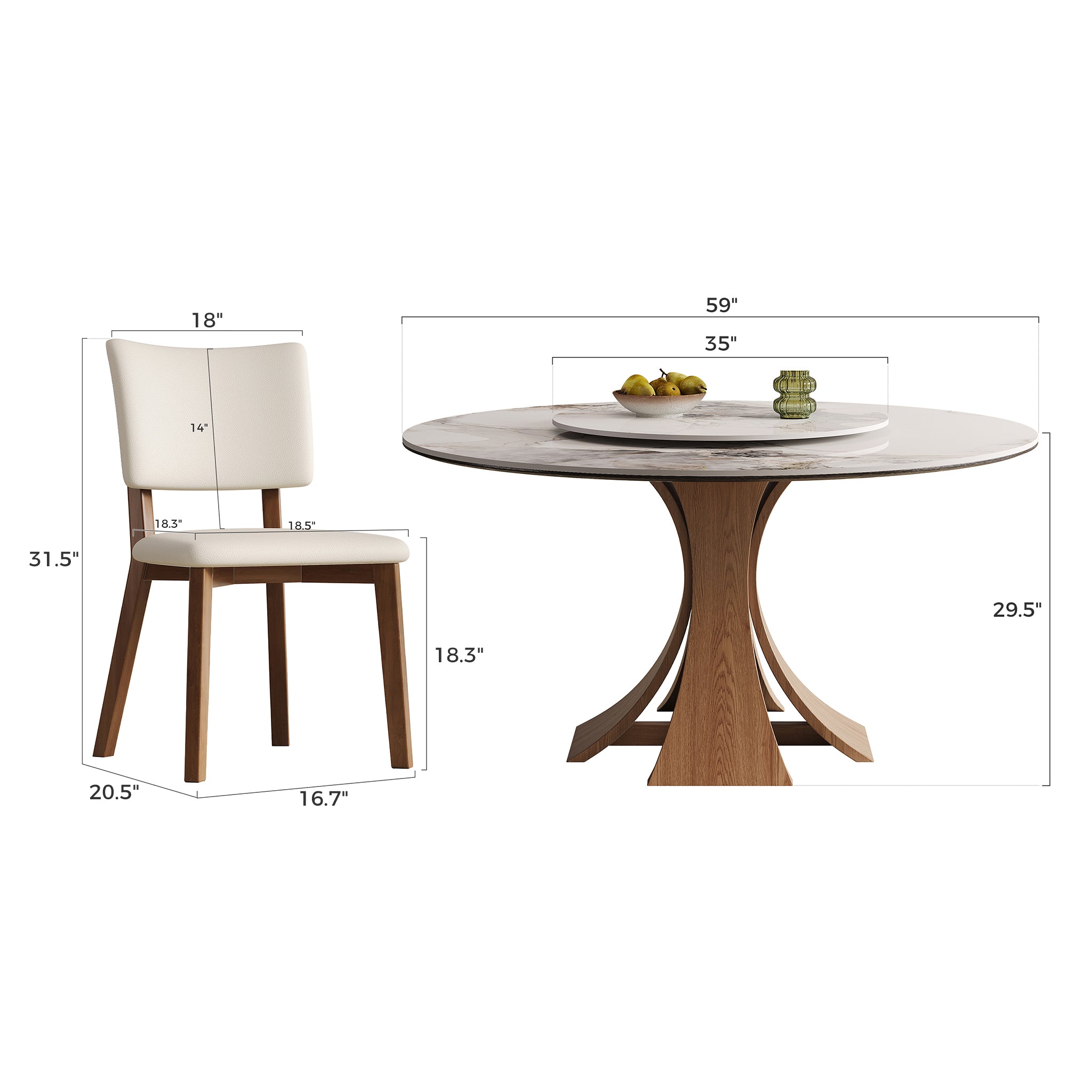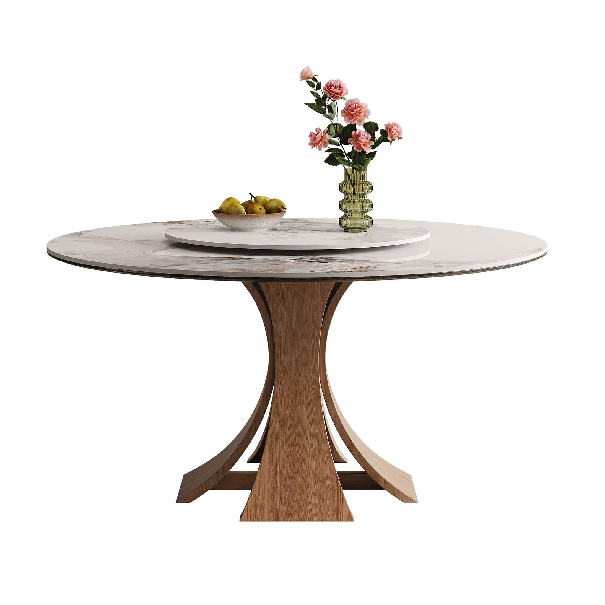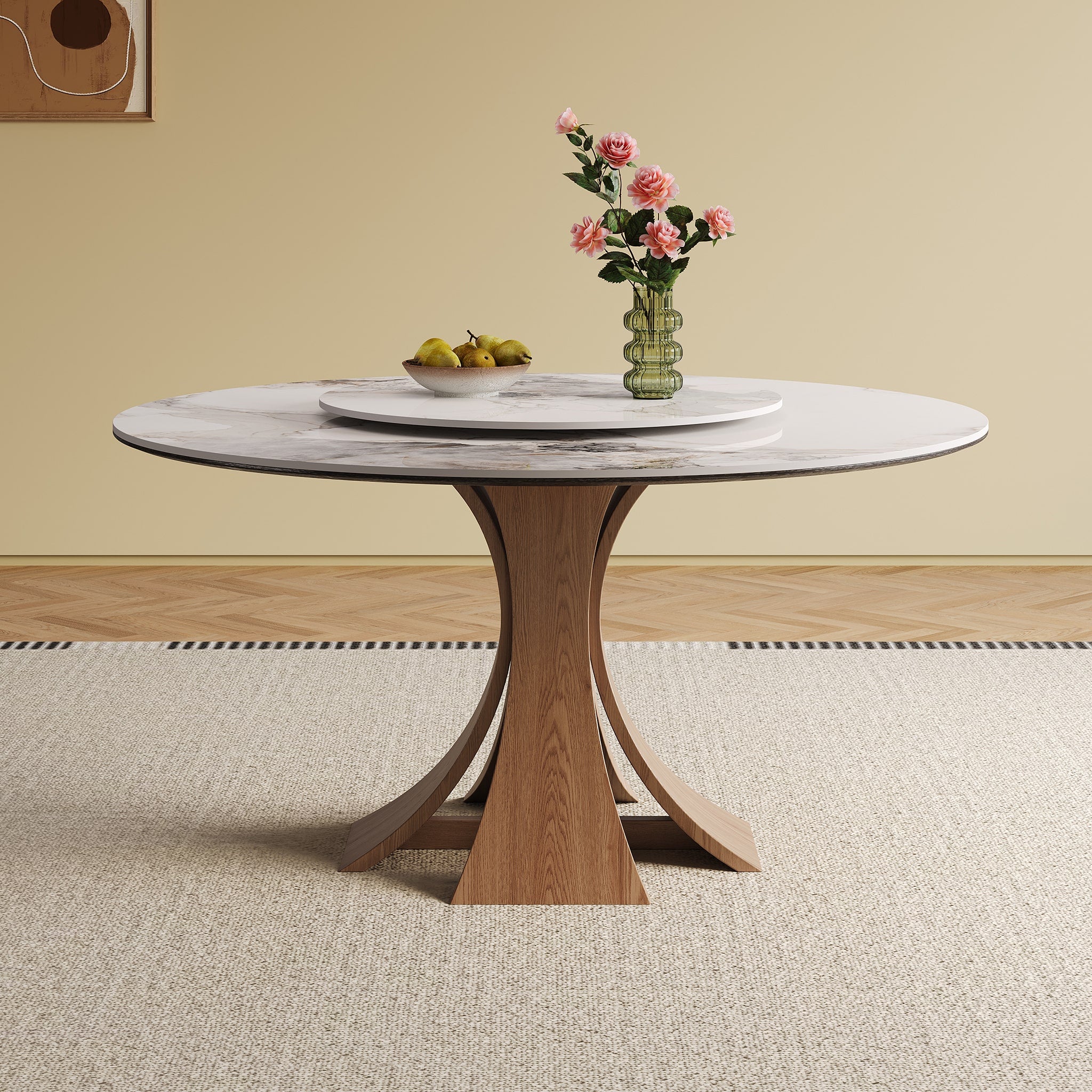 • Modern Mid-Century Round Dining Table with Sintered Stone Top, Seats 6-8, Durable Scratch-Resistant DesignPandora / 59" Table / with Lazy Susan