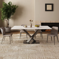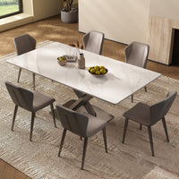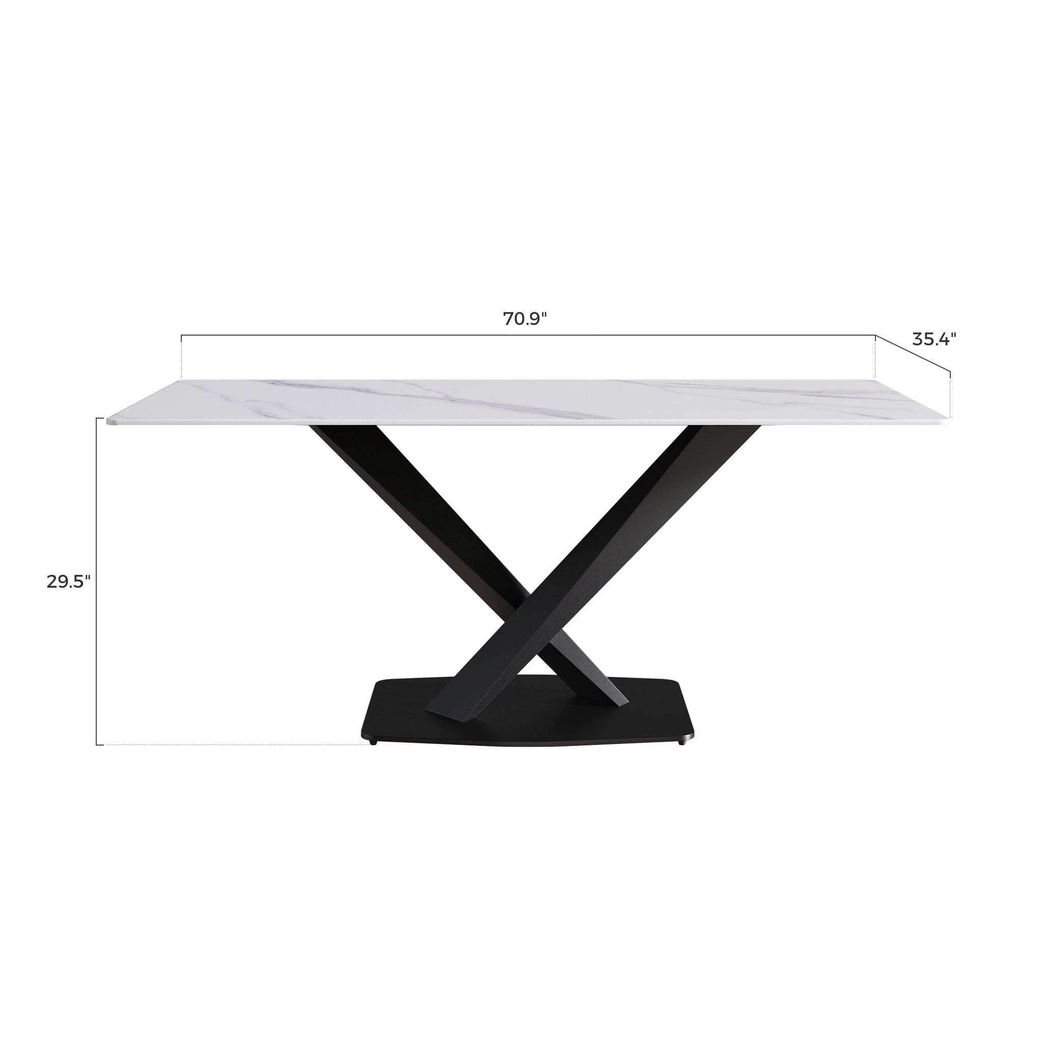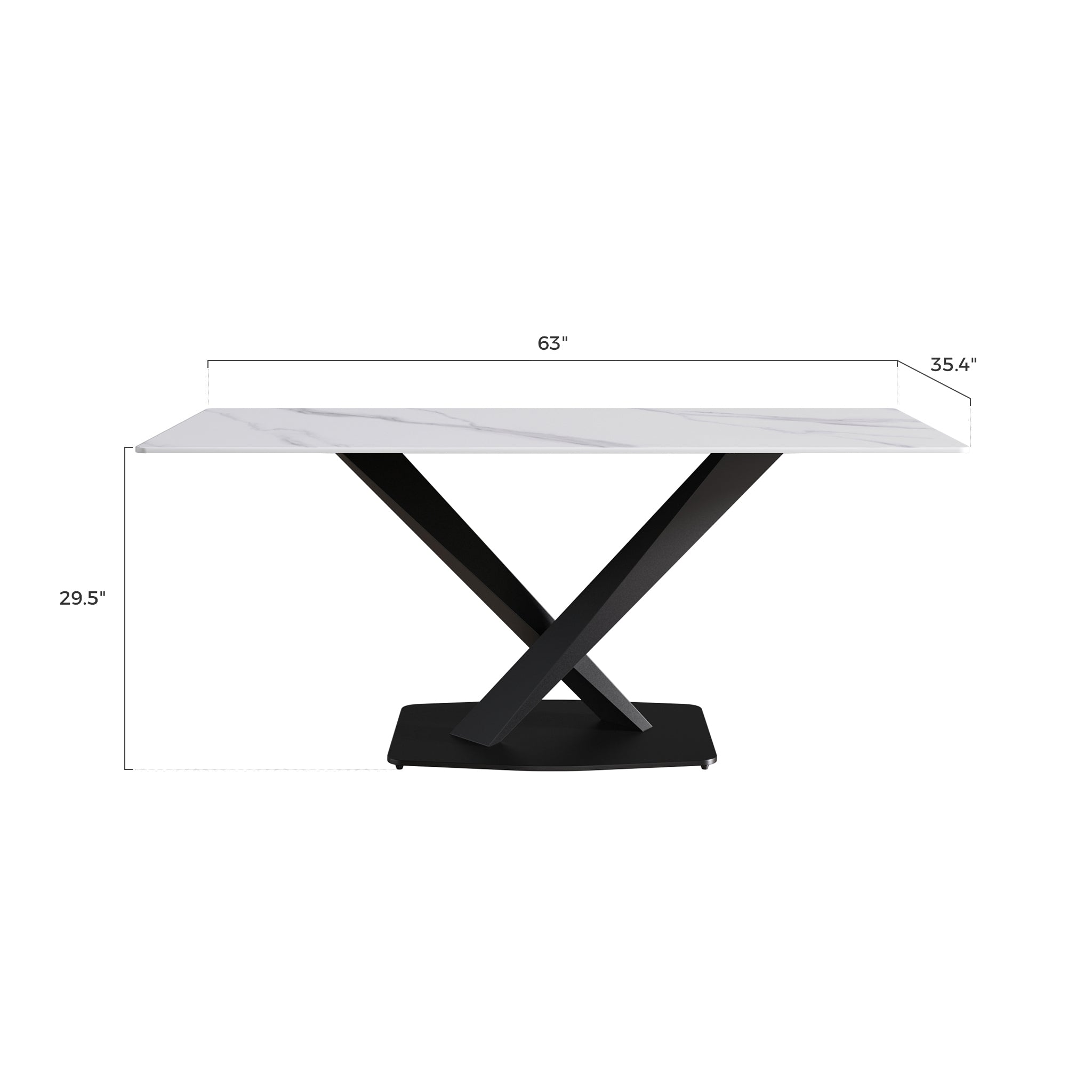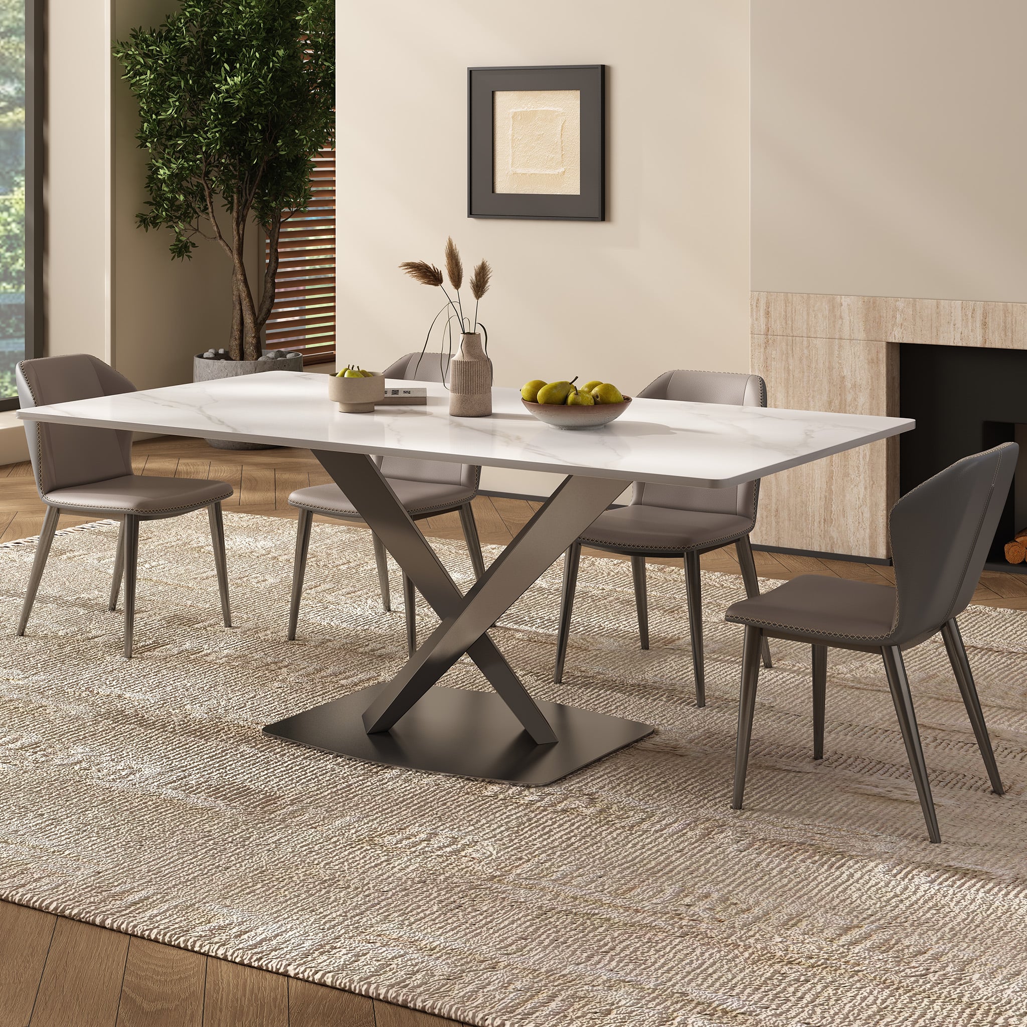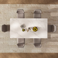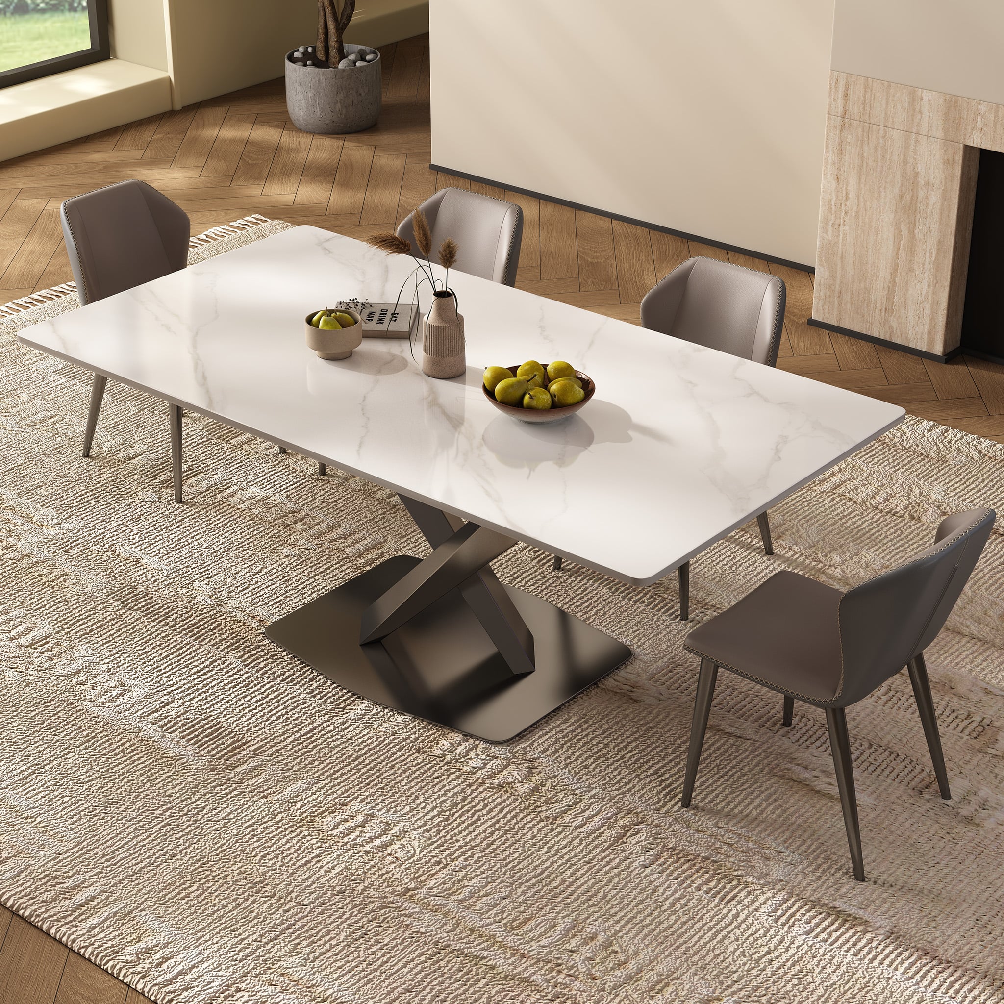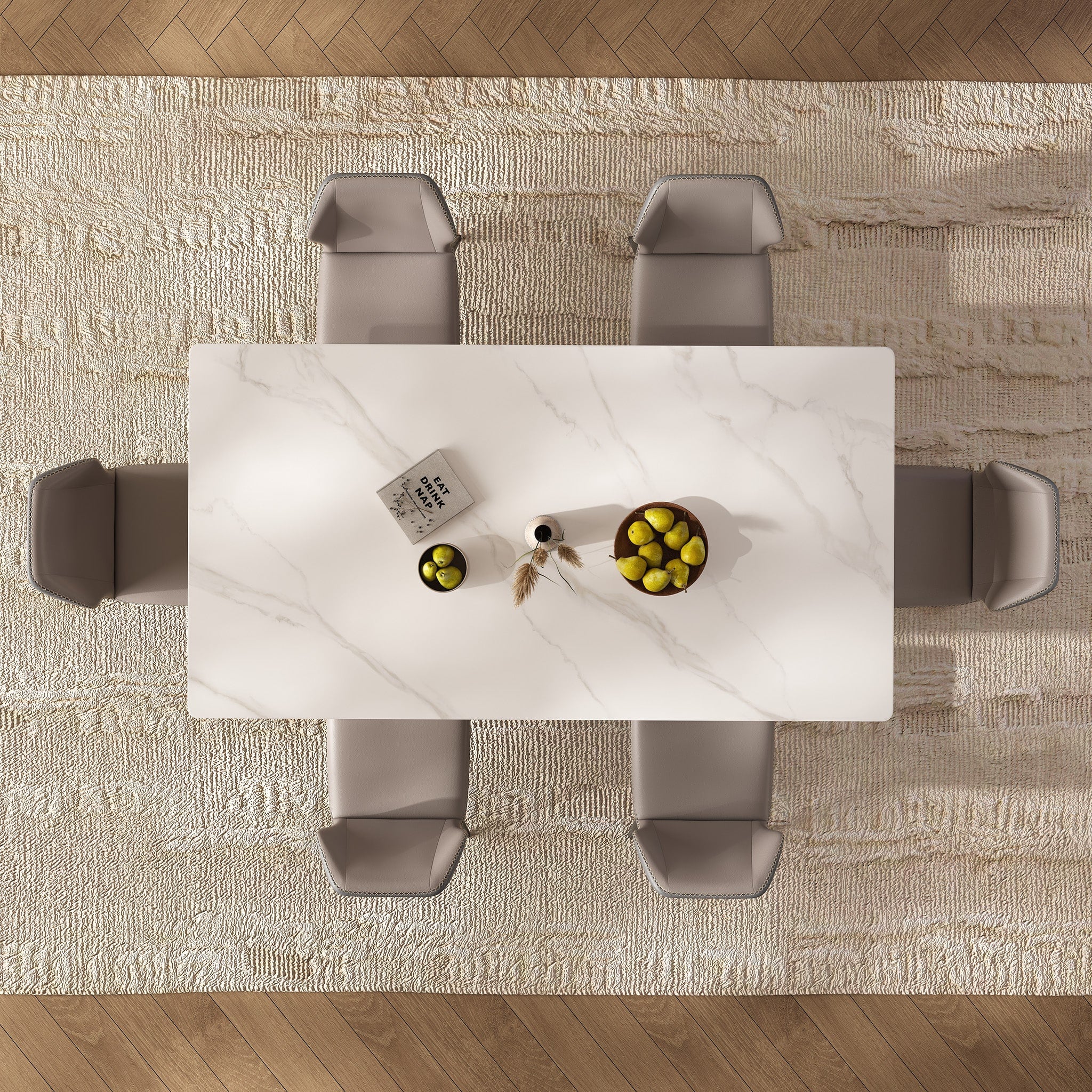 Modern Minimalist Rectangular Dining Table for 6, White Sintered Stone Top with Stable Base, Heat & Scratch Resistant
