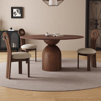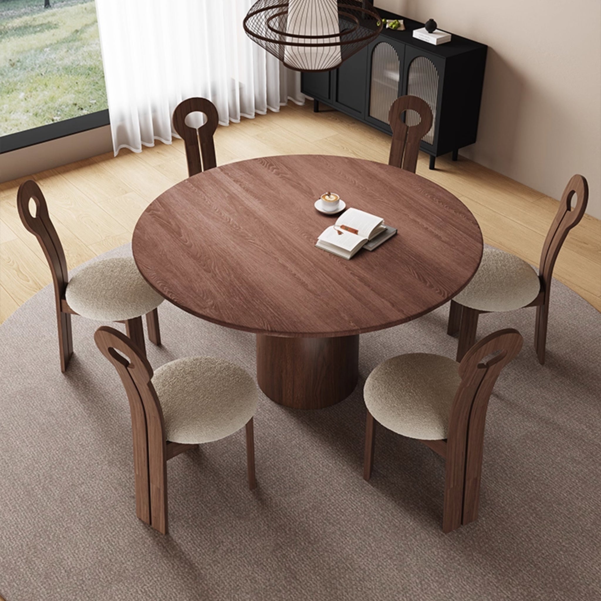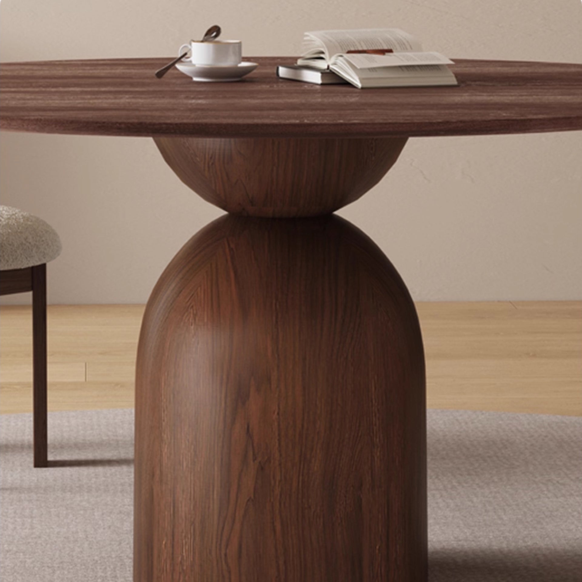 Sleek round top with a sturdy pedestal base provides ample legroom. The warm finish adds a cozy touch to any space.