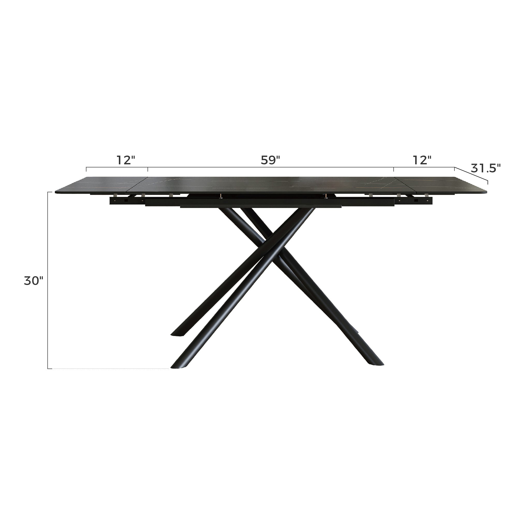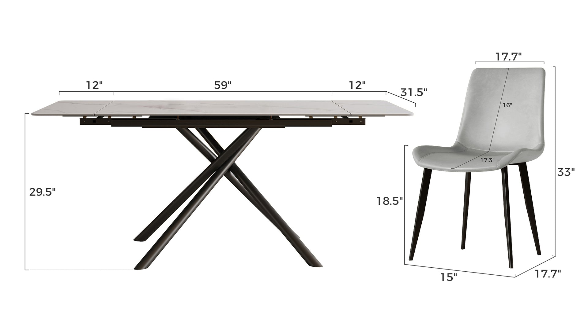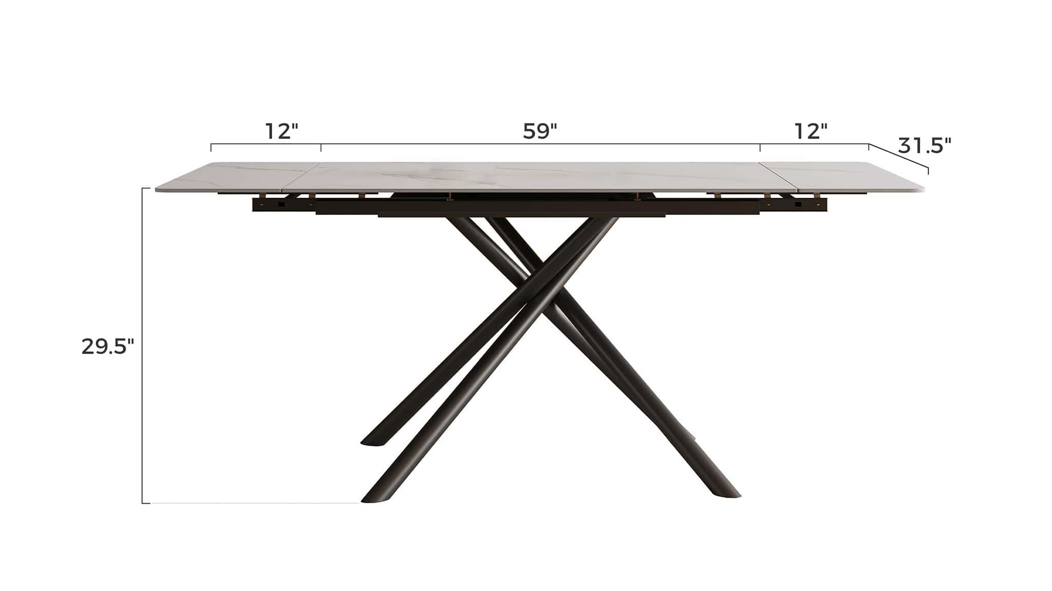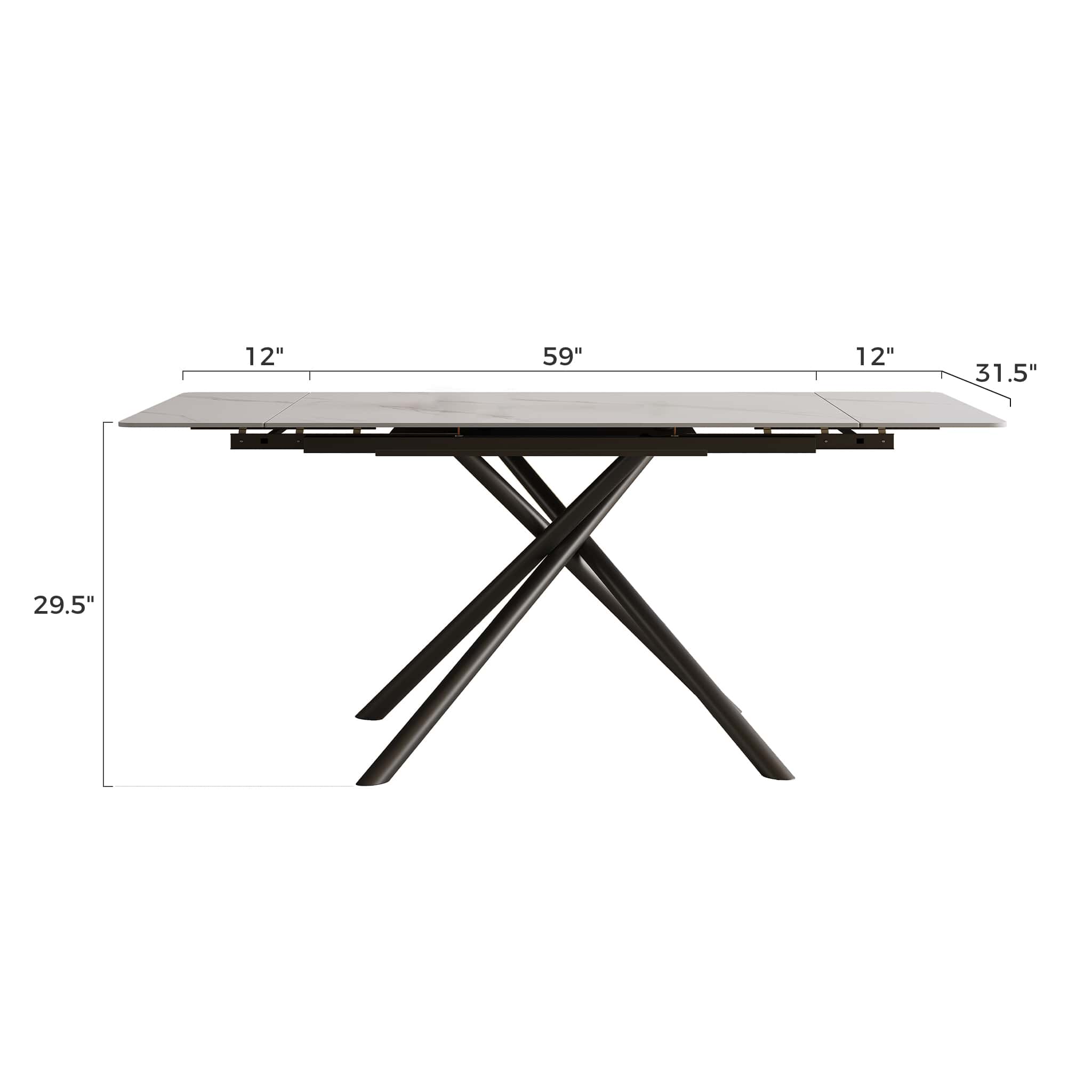 Featuring a high-quality sintered stone surface, the tabletop extends from 59 inches to 83 inches, providing flexible seating options. Whether for daily use or hosting guests, it easily adapts to your needs.