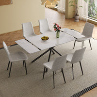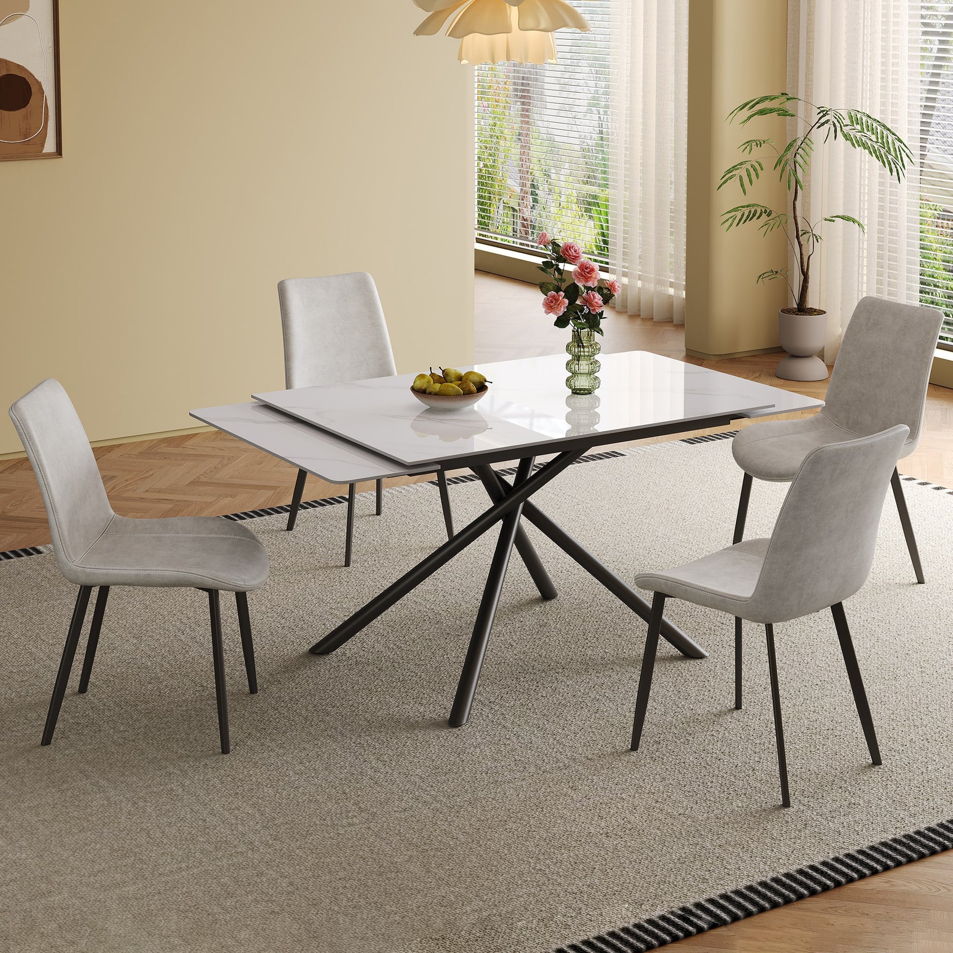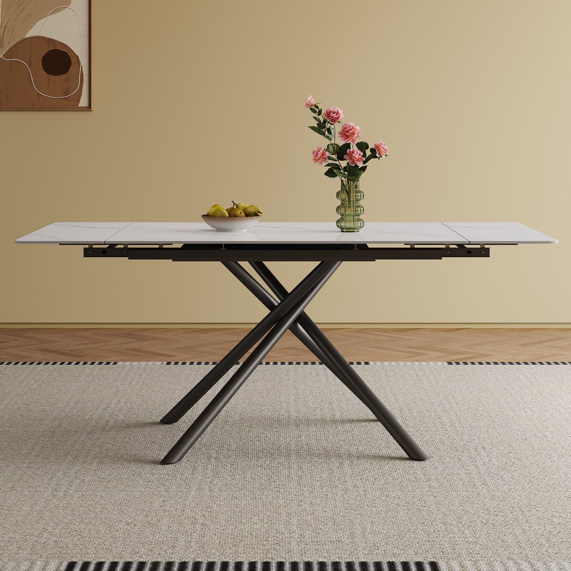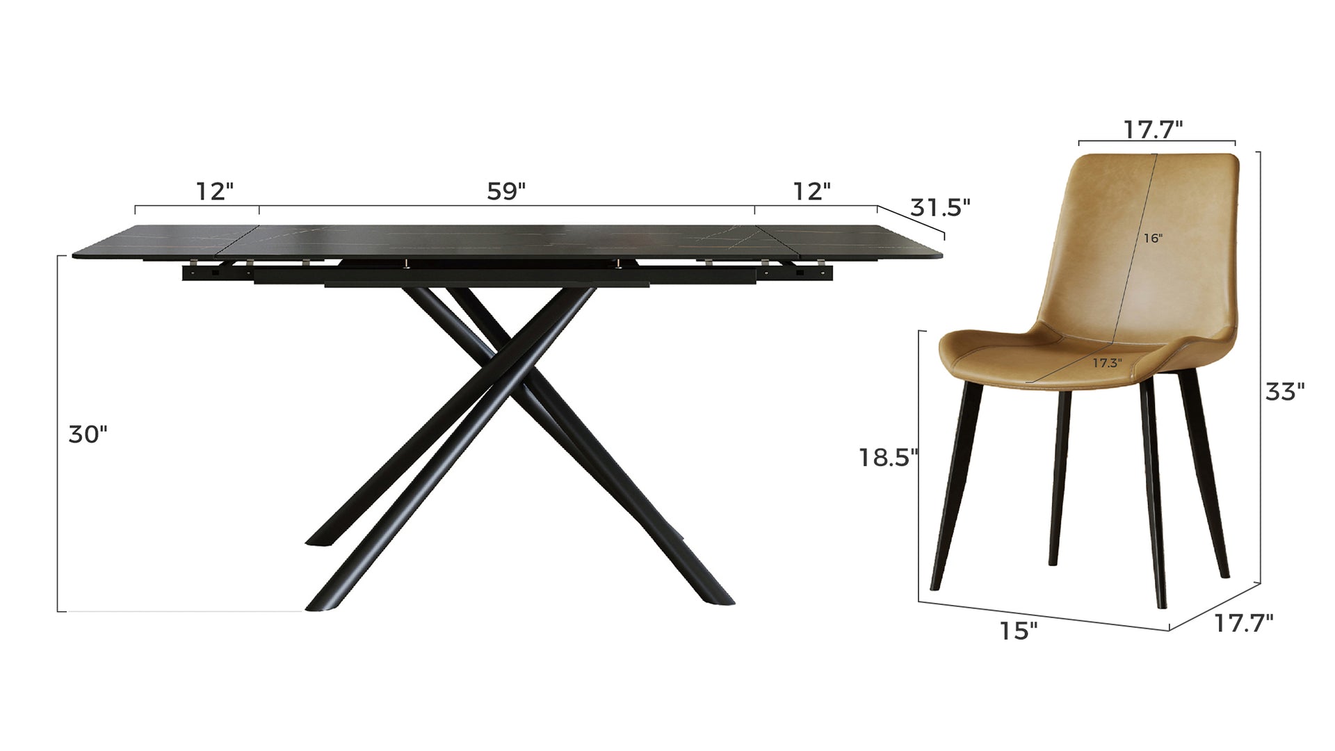 Featuring a high-quality sintered stone surface, the tabletop extends from 59 inches to 83 inches, providing flexible seating options. Whether for daily use or hosting guests, it easily adapts to your needs.