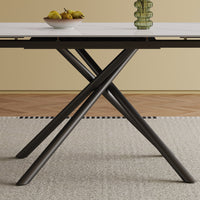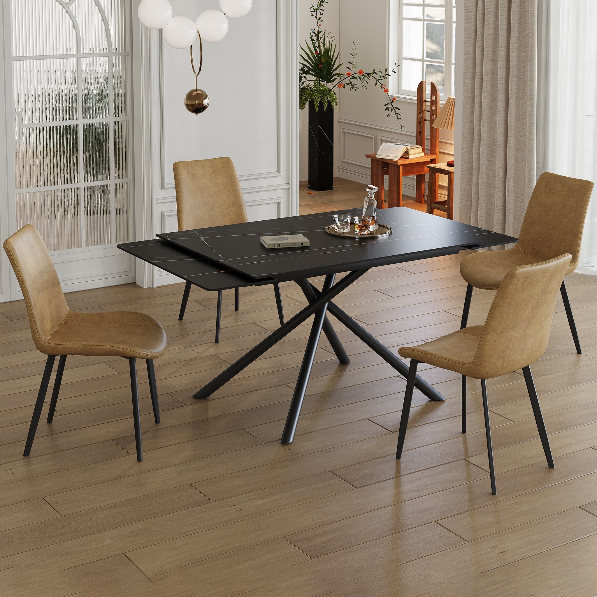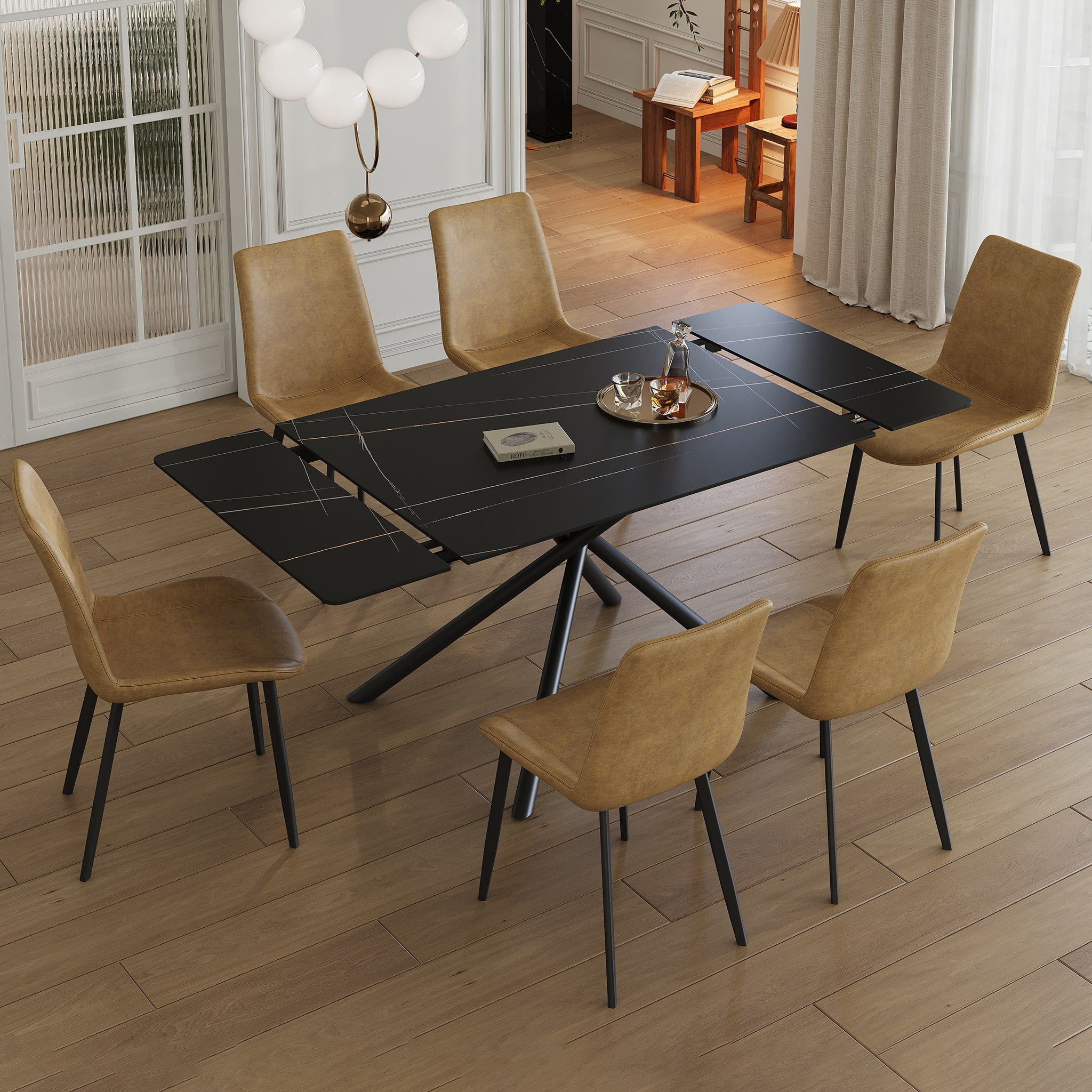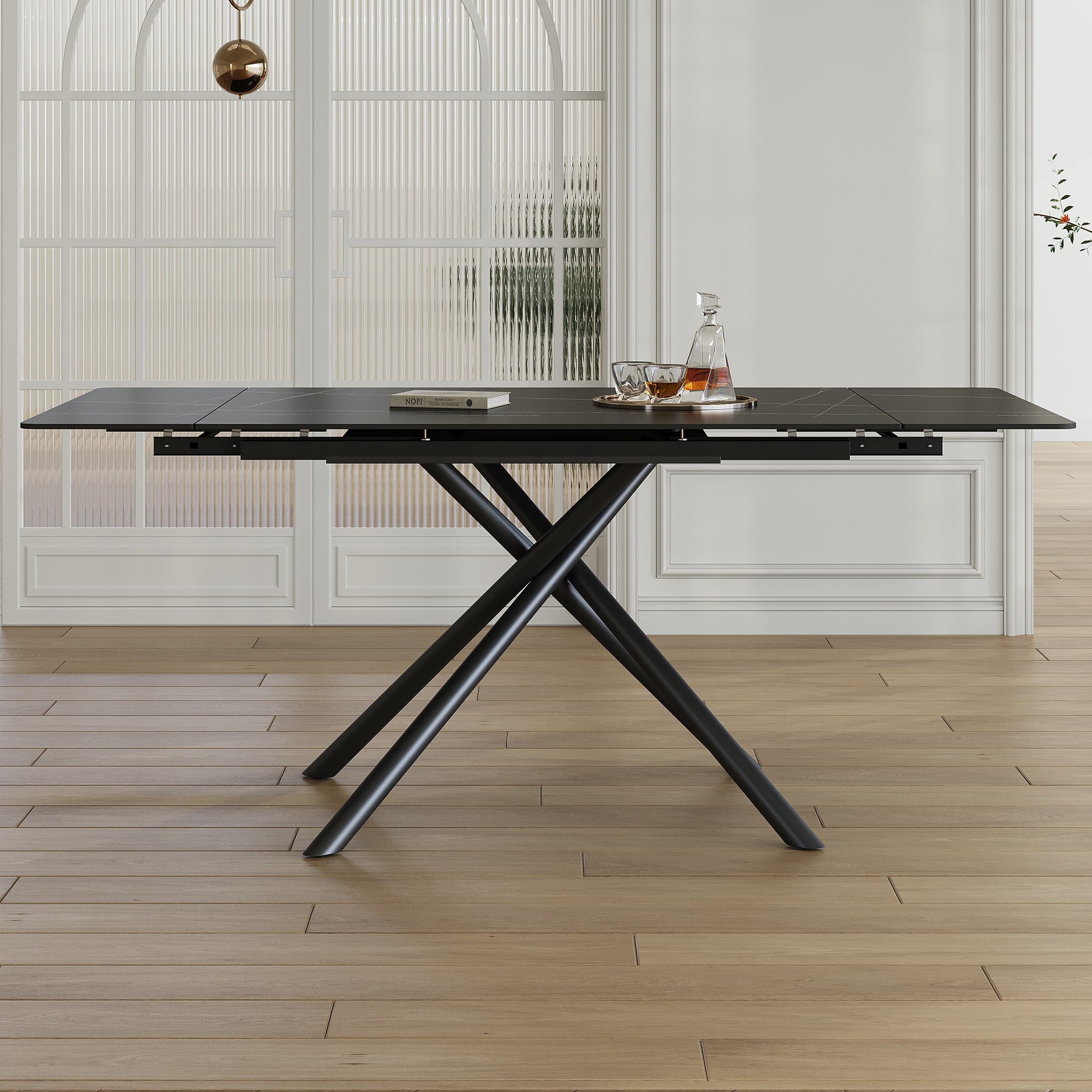 • Modern Rectangular Sintered Stone Dining Table for 6 – Scratch Resistant, Easy to Clean, Sturdy Steel FrameBlack / 59"-83" Table