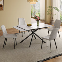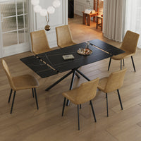 Modern Rectangular Sintered Stone Dining Table for 6 – Scratch Resistant, Easy to Clean, Sturdy Steel Frame