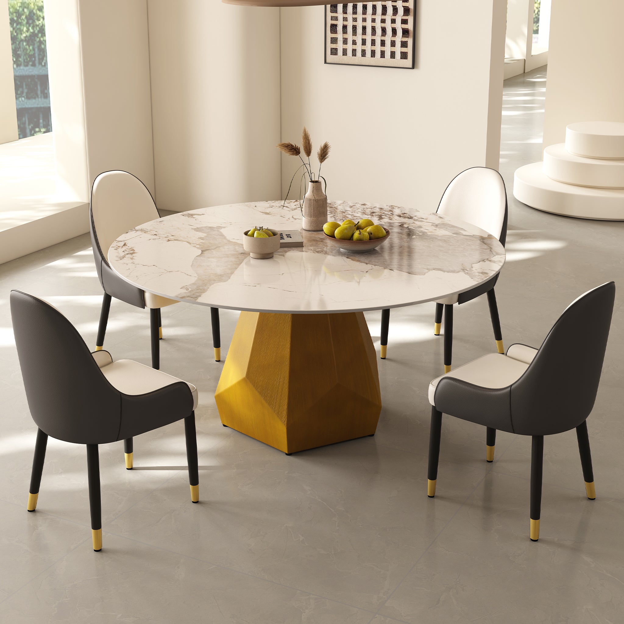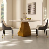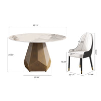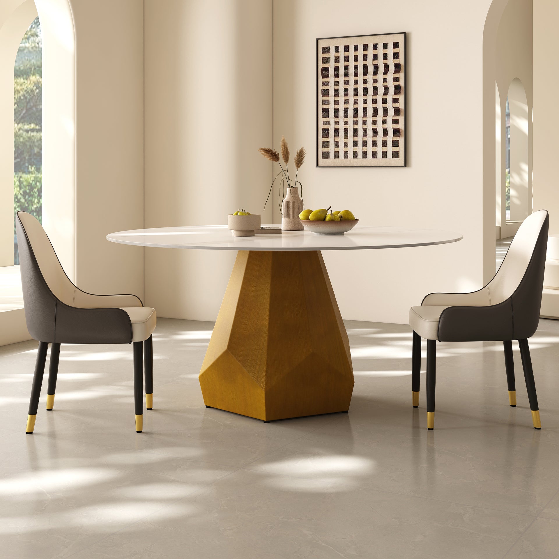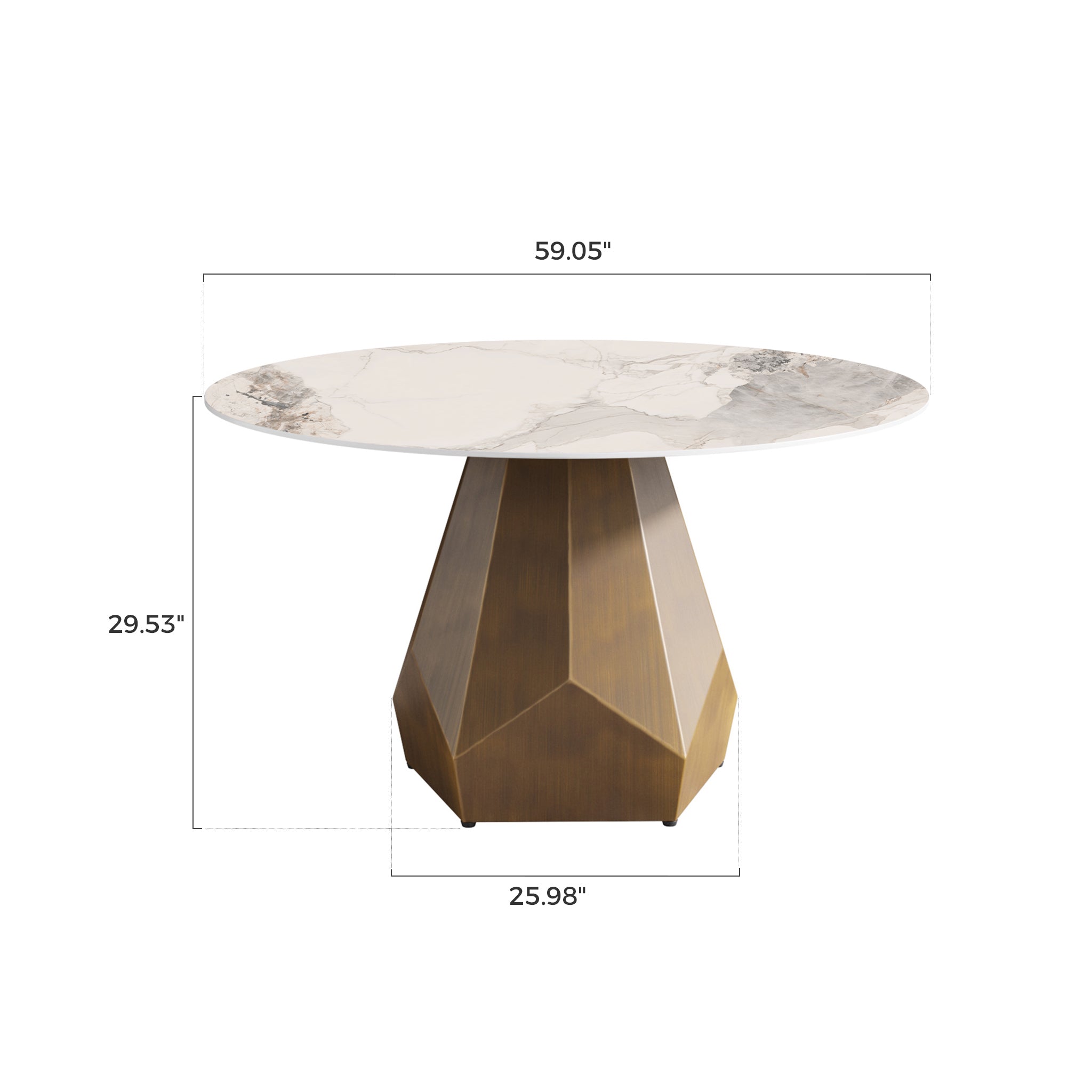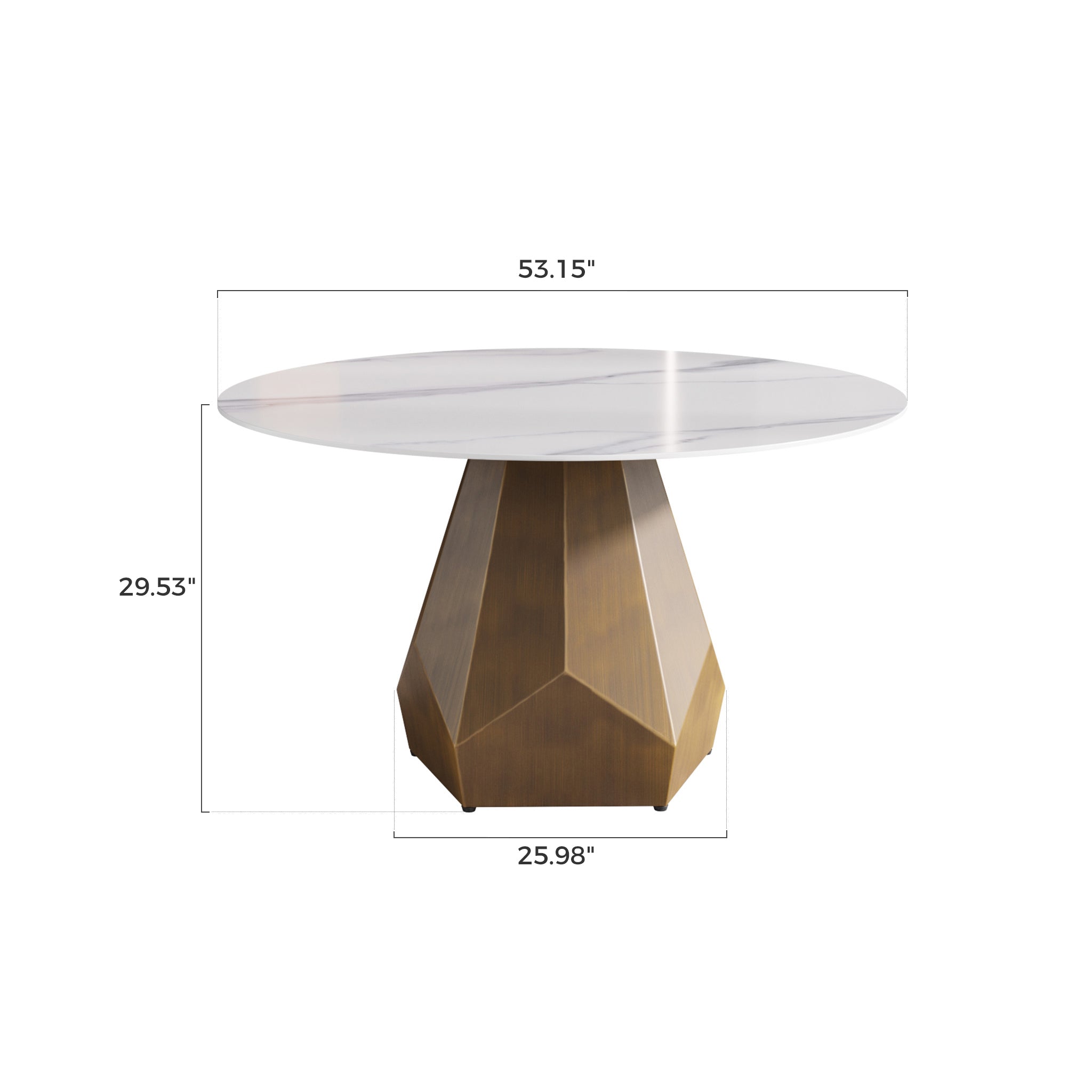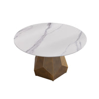 • Modern Round Dining Table – White Sintered Stone Top, Bronze Base, Seats 6-8Pandora / 53" Table