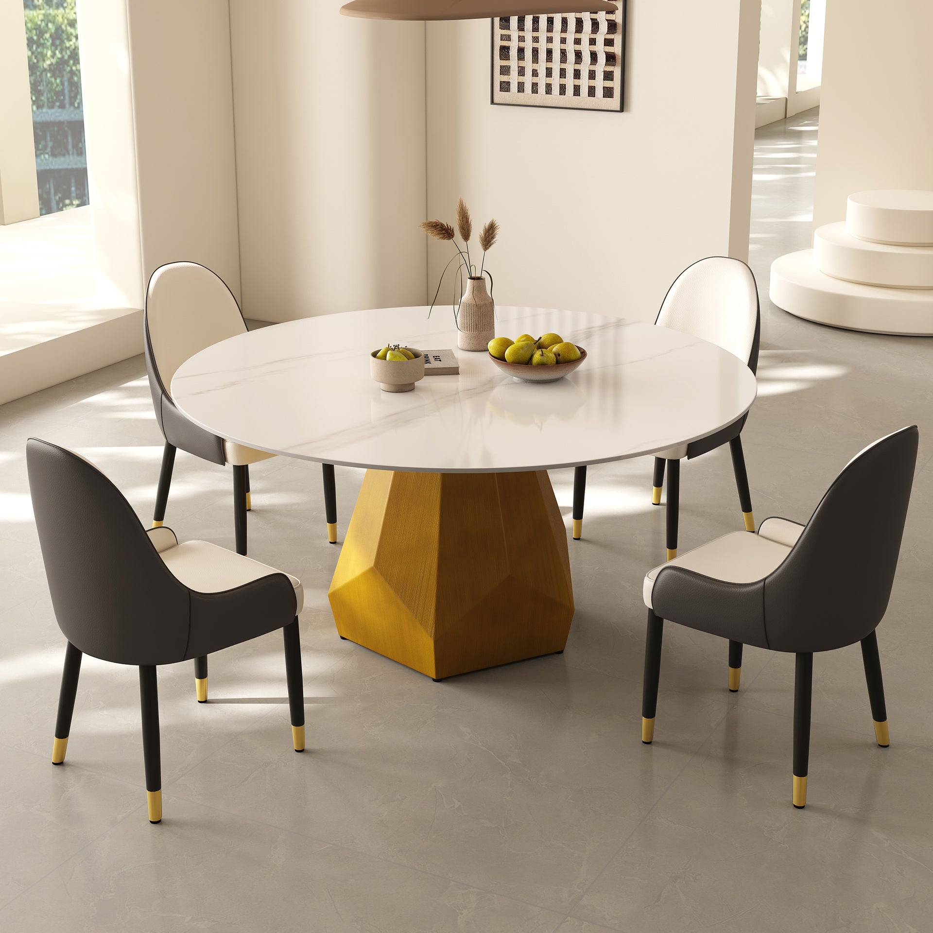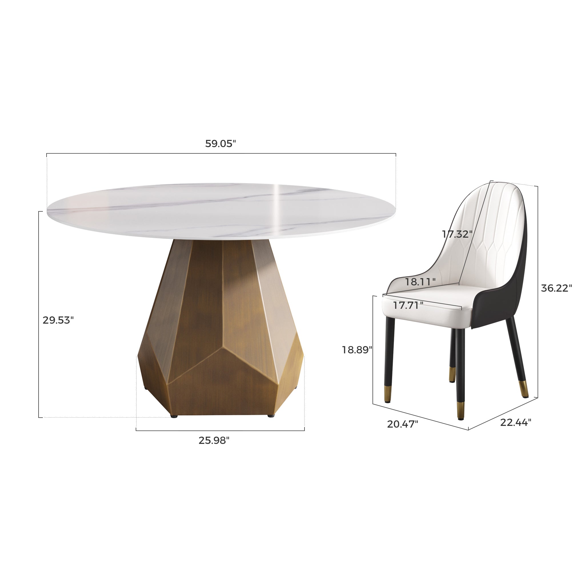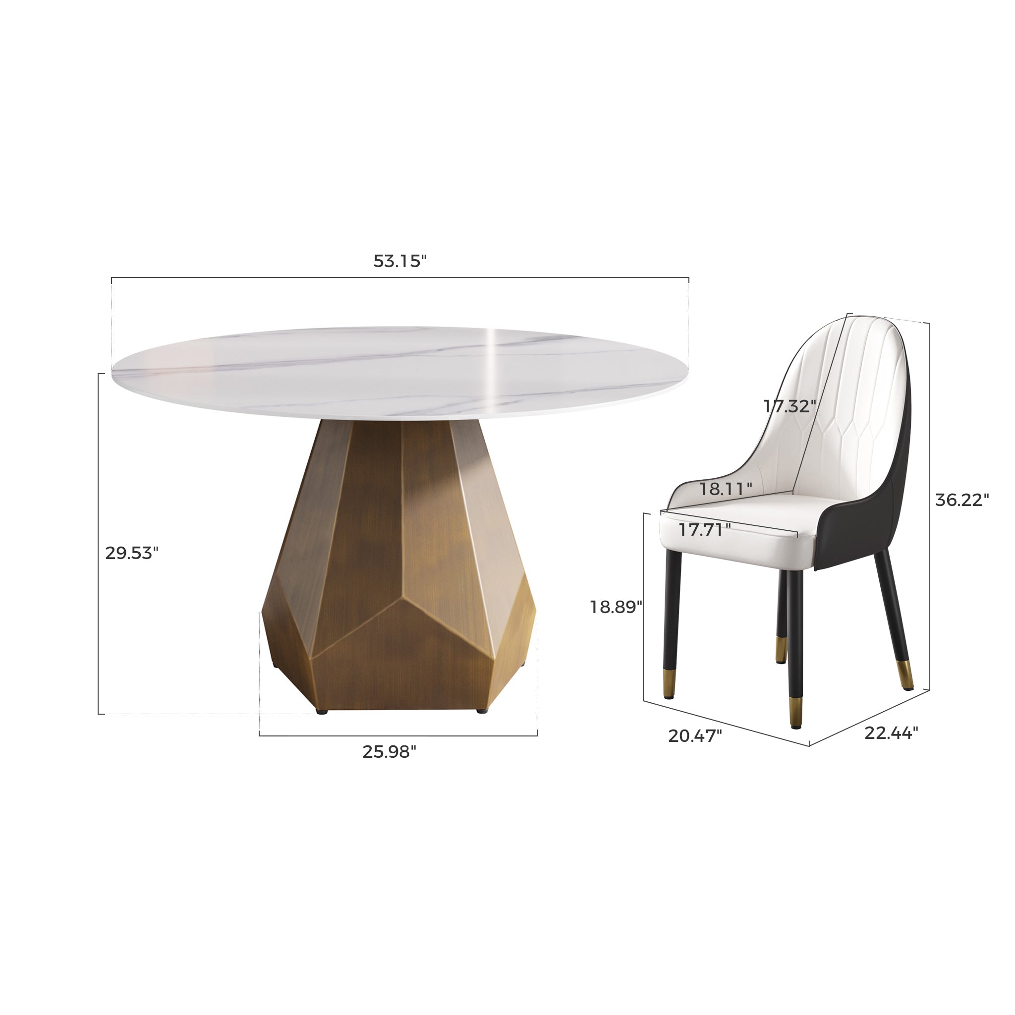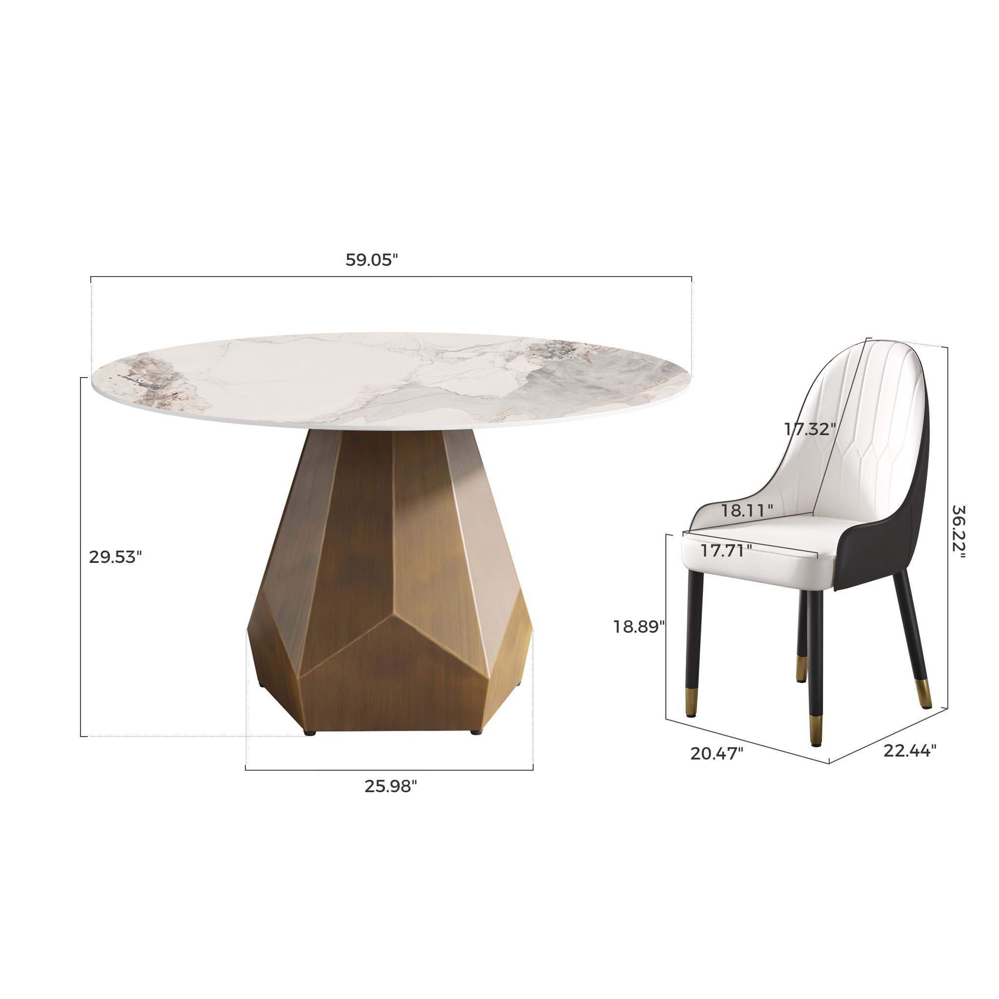 • Modern Round Dining Table – White Sintered Stone Top, Bronze Base, Seats 6-8Pandora / 53" Table