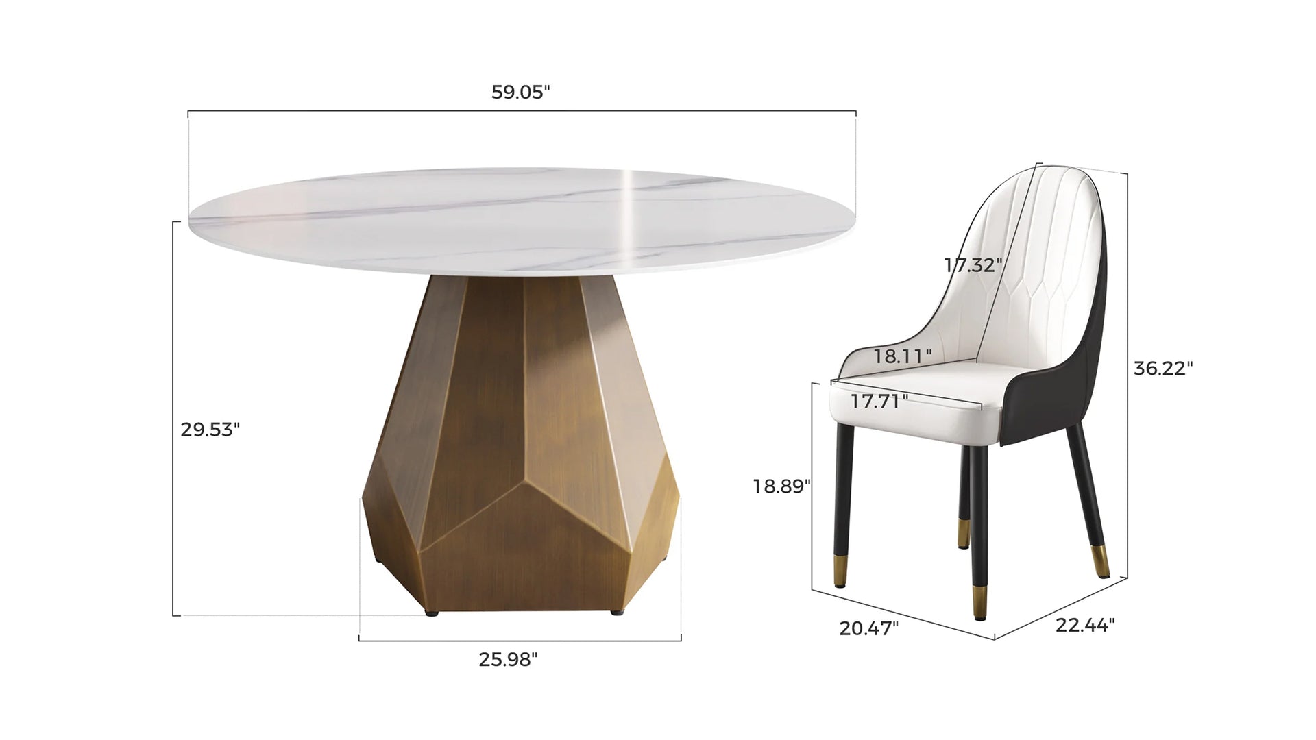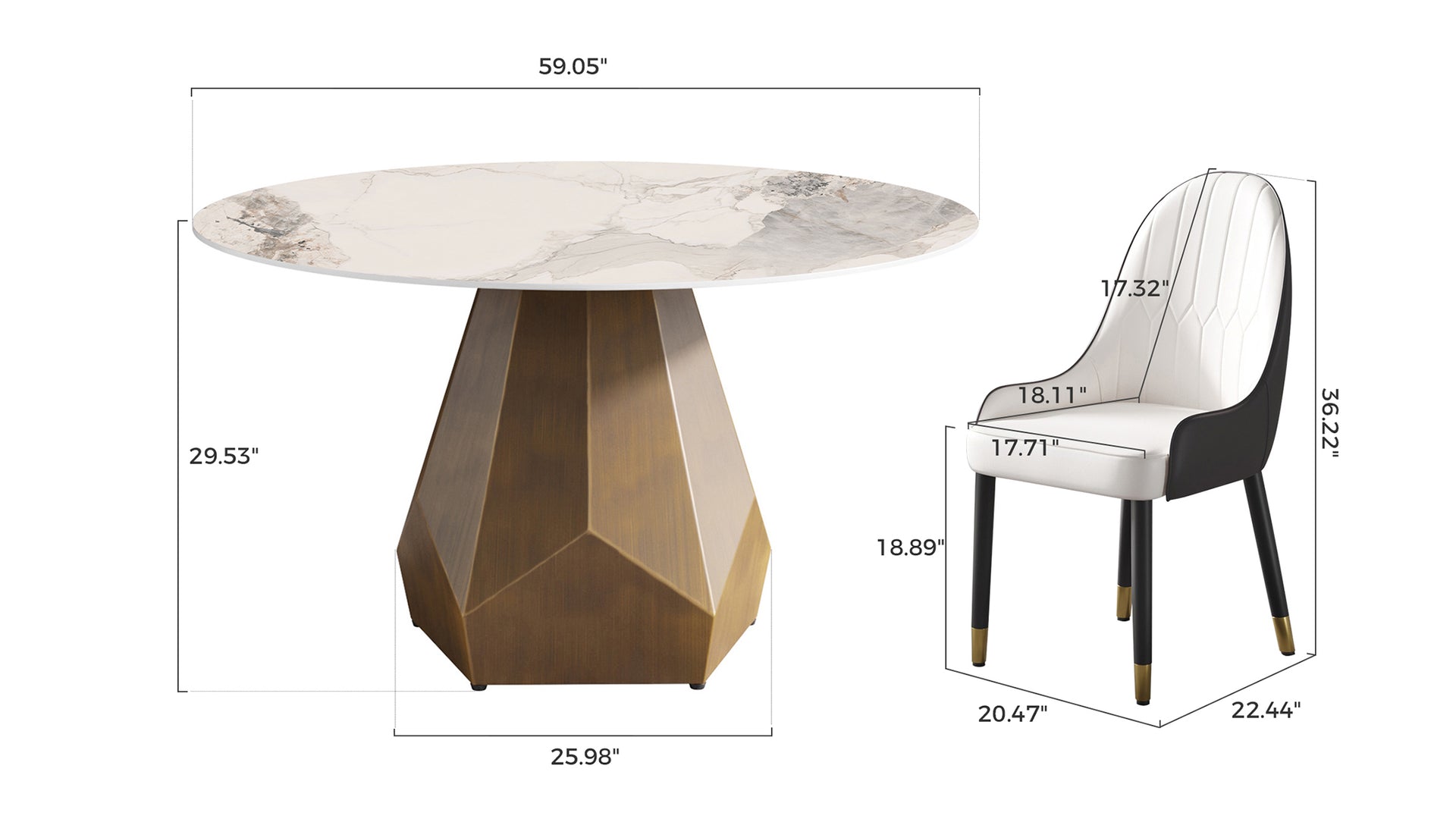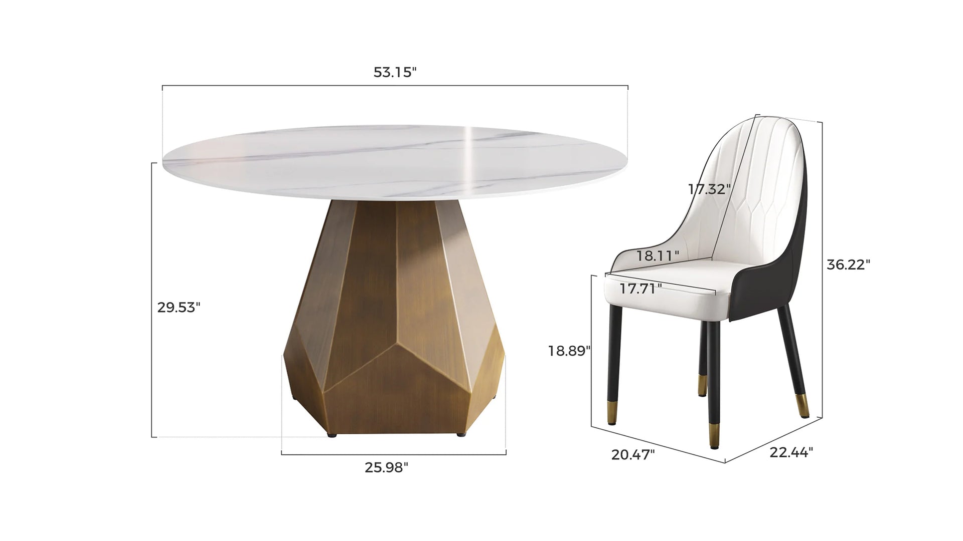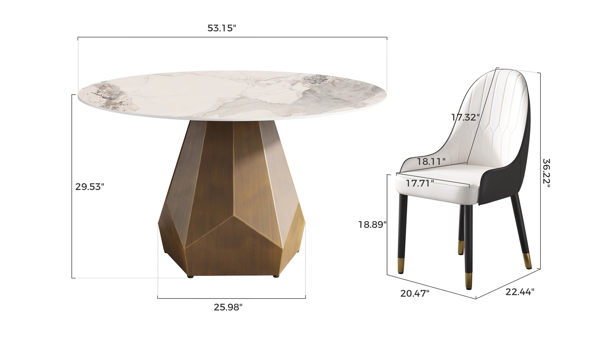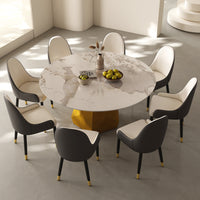 • Modern Round Dining Table – White Sintered Stone Top, Bronze Base, Seats 6-8Pandora / 53" Table